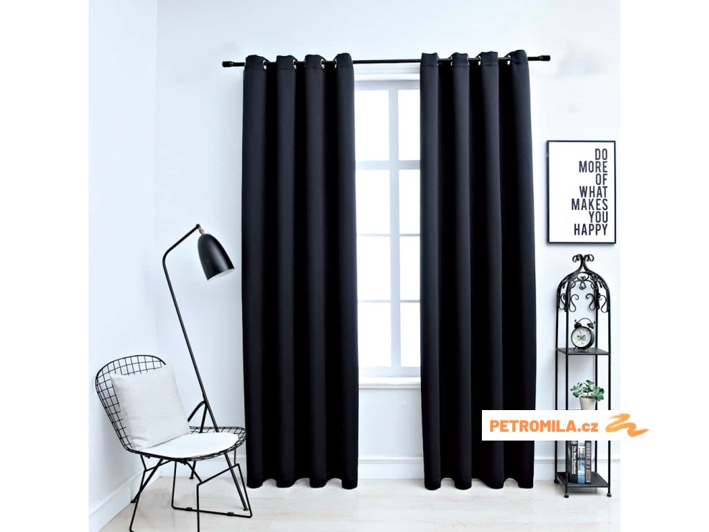 Zatemňovací závěsy s kovovými kroužky 2 ks černé 140 x 225 cm