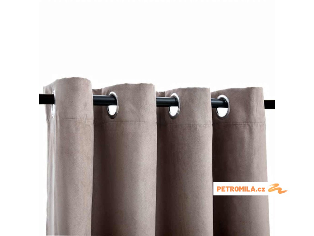 Závěsy mají jednoduchý a přitom nadčasový design. Jelikož jsou opatřené kovovými kroužky, lze je snadno pověsit na všechny typy záclonových tyčí. Navíc jsou vyrobené z prémiového polyesteru, který na dotek působí jako semiš, a můžete je prát v pračce.