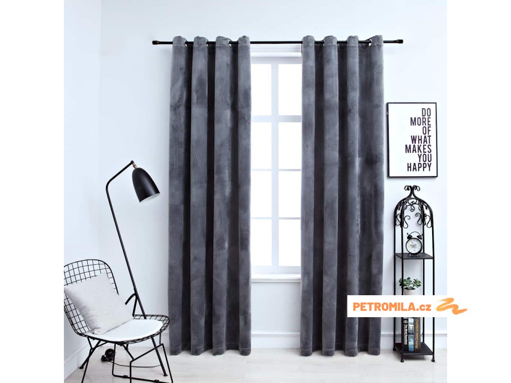 Sametová látka dodá vašemu interiéru hřejivou atmosféru. Jelikož jsou závěsy opatřené kovovými kroužky, pověsíte je bez námahy na všechny typy záclonových tyčí. Navíc je lze prát v pračce.