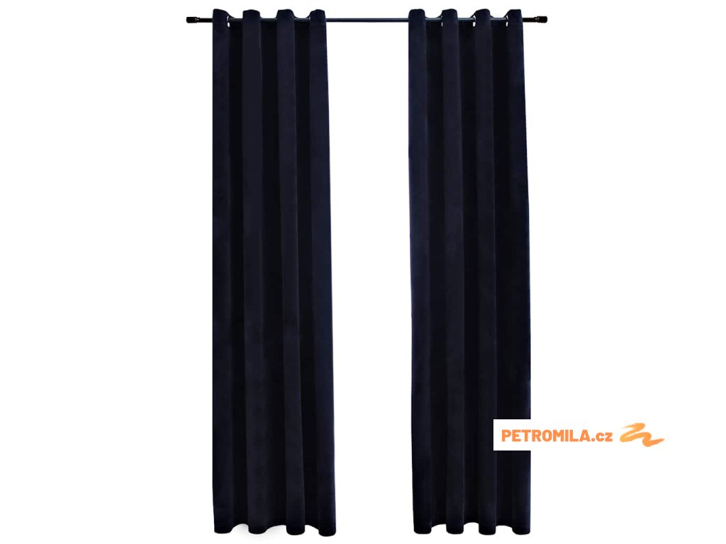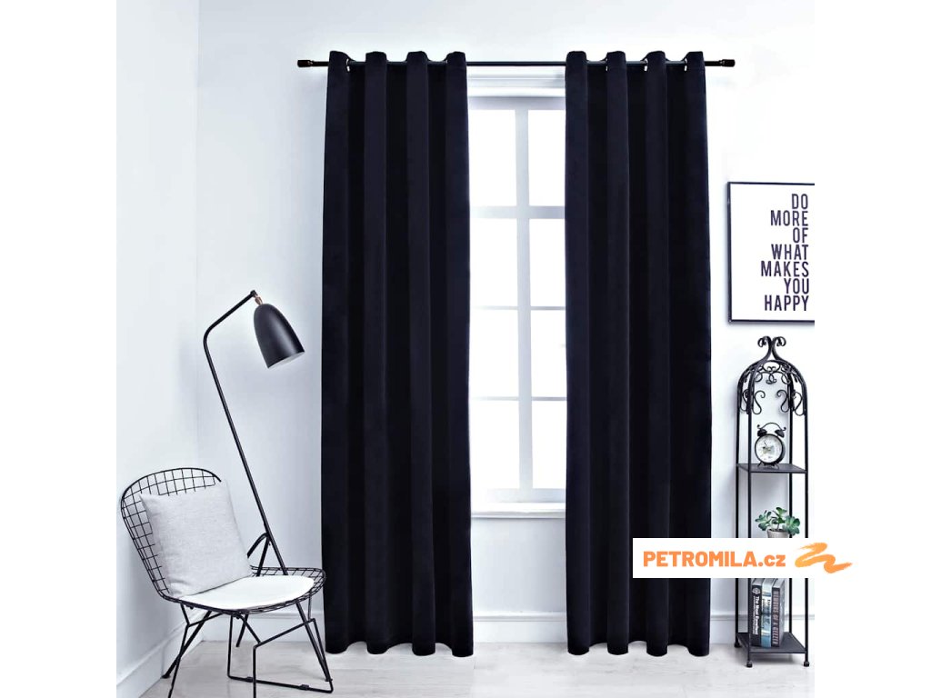 Zatemňovací závěsy s kroužky 2 ks samet černé 140 x 175 cm