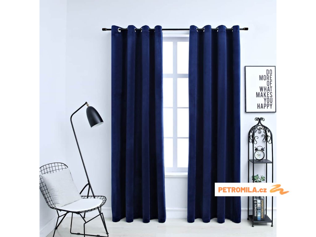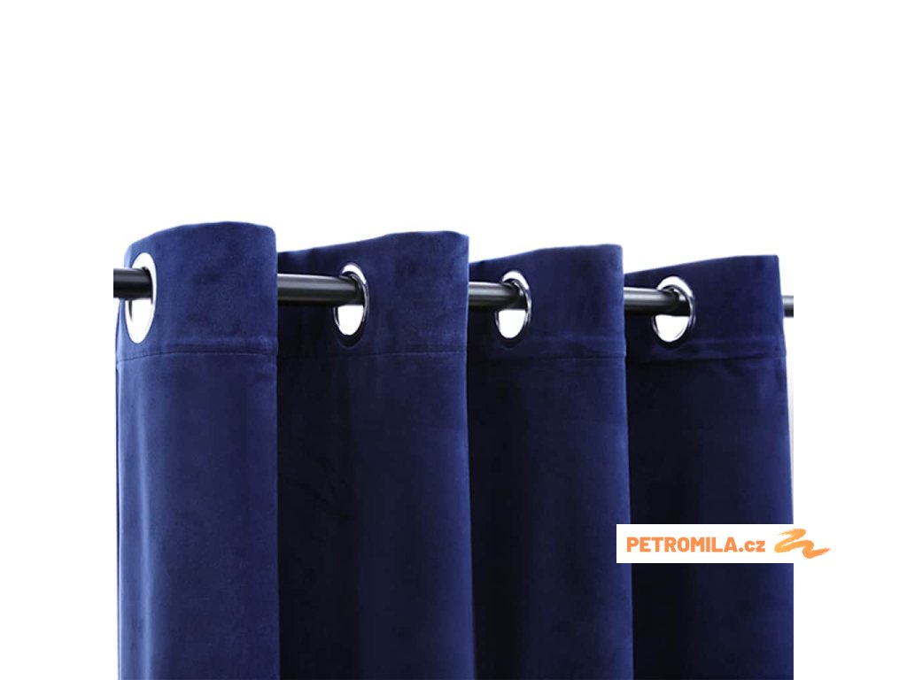 Zatemňovací závěsy s kroužky 2 ks samet tmavě modré 140x225 cm