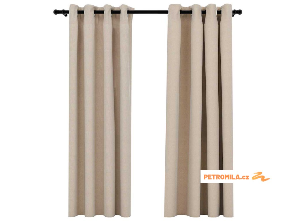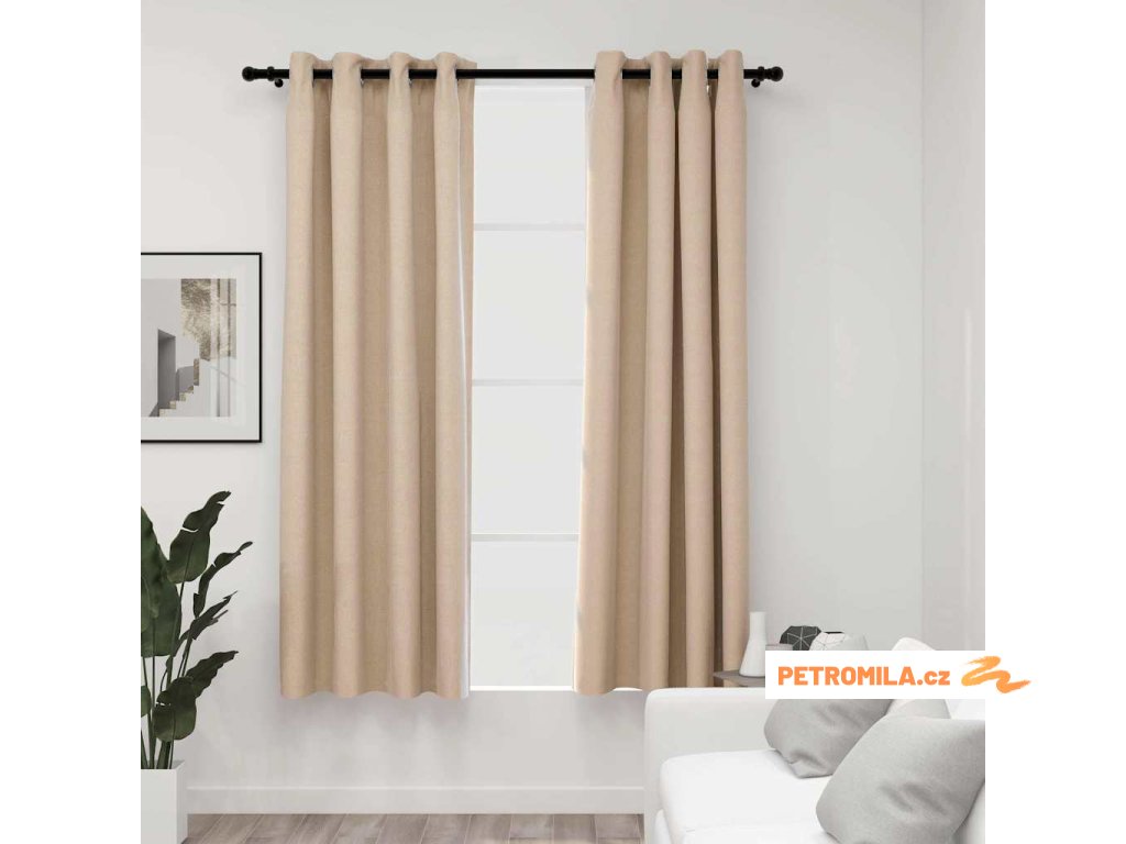 Zatemňovací závěsy s kroužky vzhled lnu 2 ks béžové 140x175 cm