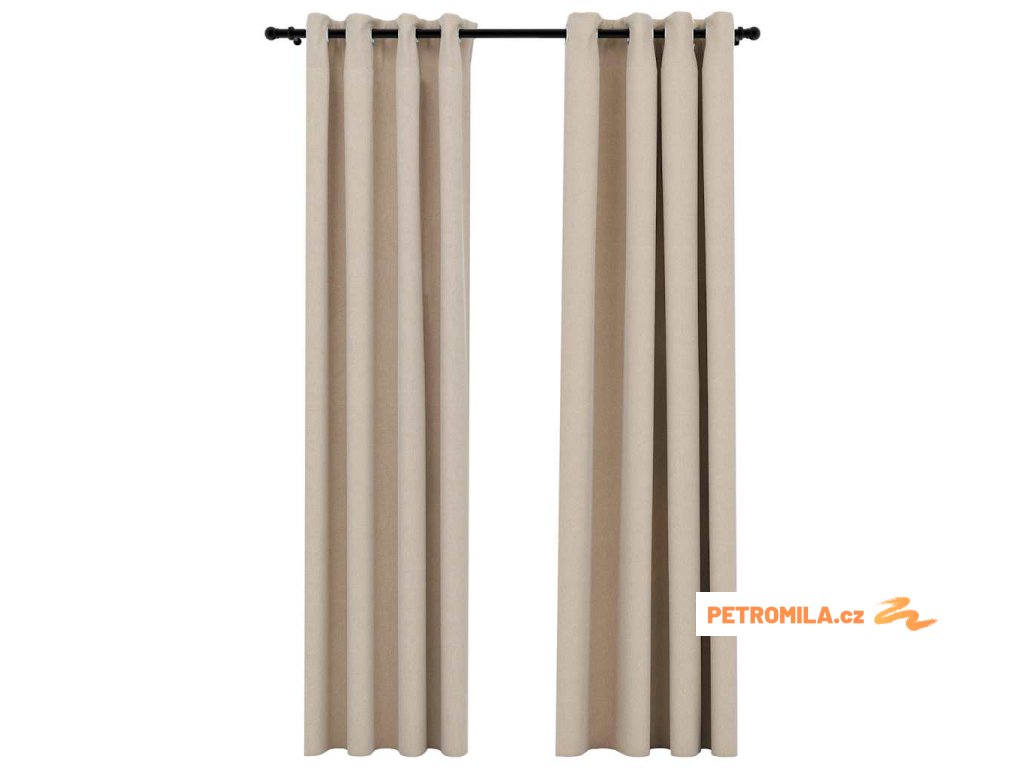 Zatemňovací závěsy s kroužky vzhled lnu 2 ks béžové 140x225 cm
