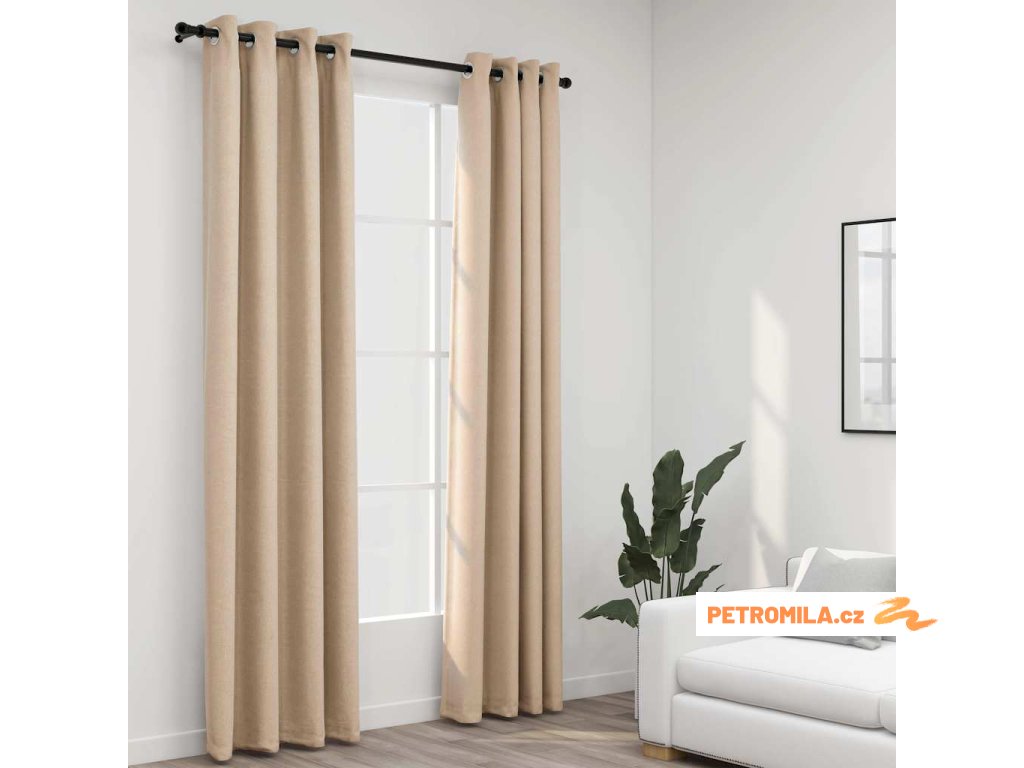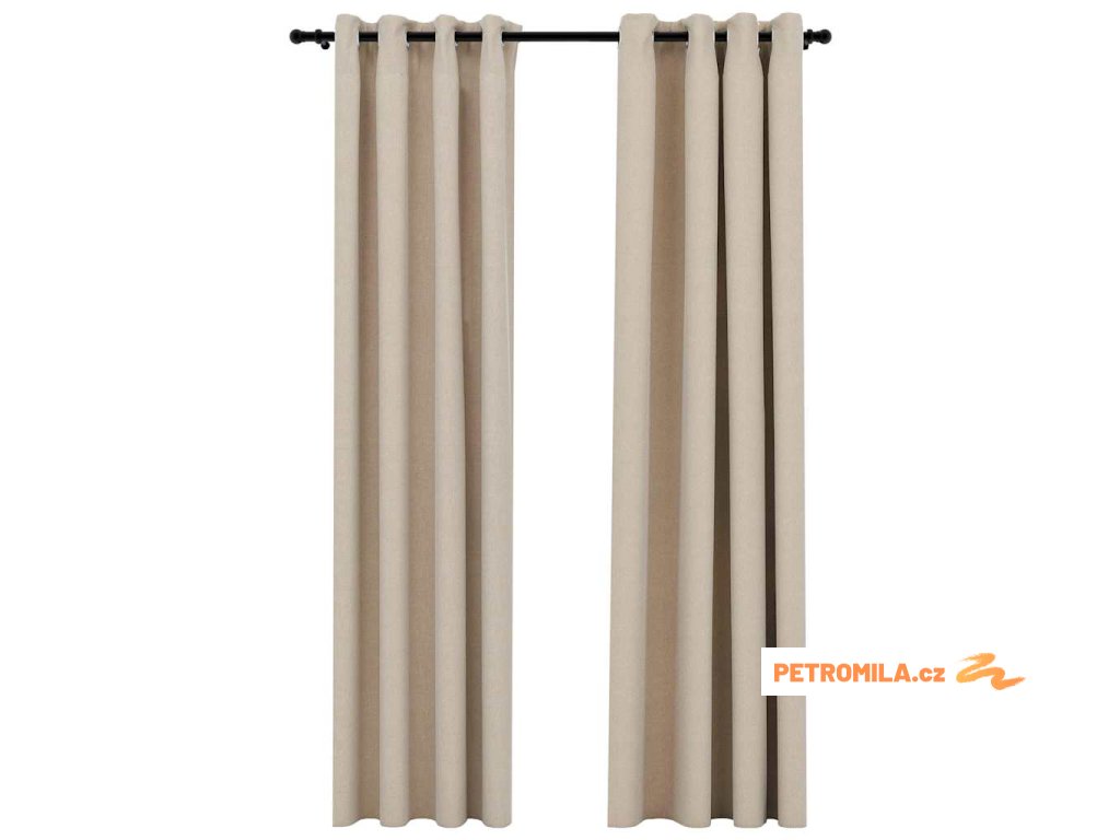 Zatemňovací závěsy s kroužky vzhled lnu 2 ks béžové 140x245 cm