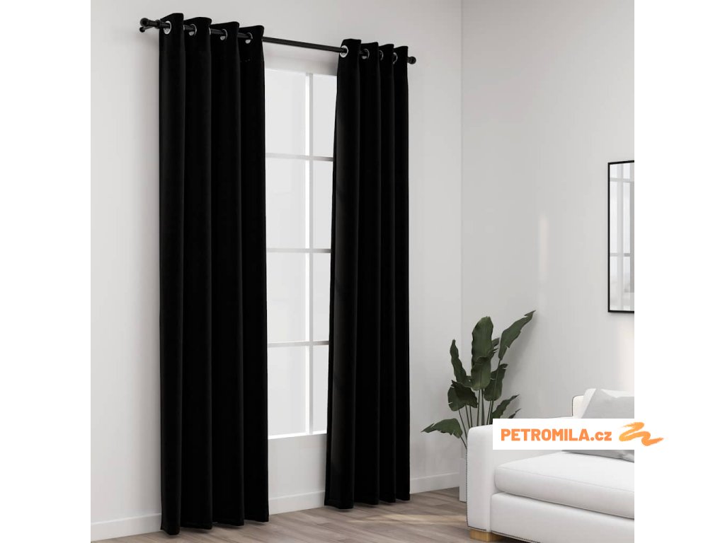 Zatemňovací závěsy s kroužky vzhled lnu 2 ks černé 140 x 245 cm
