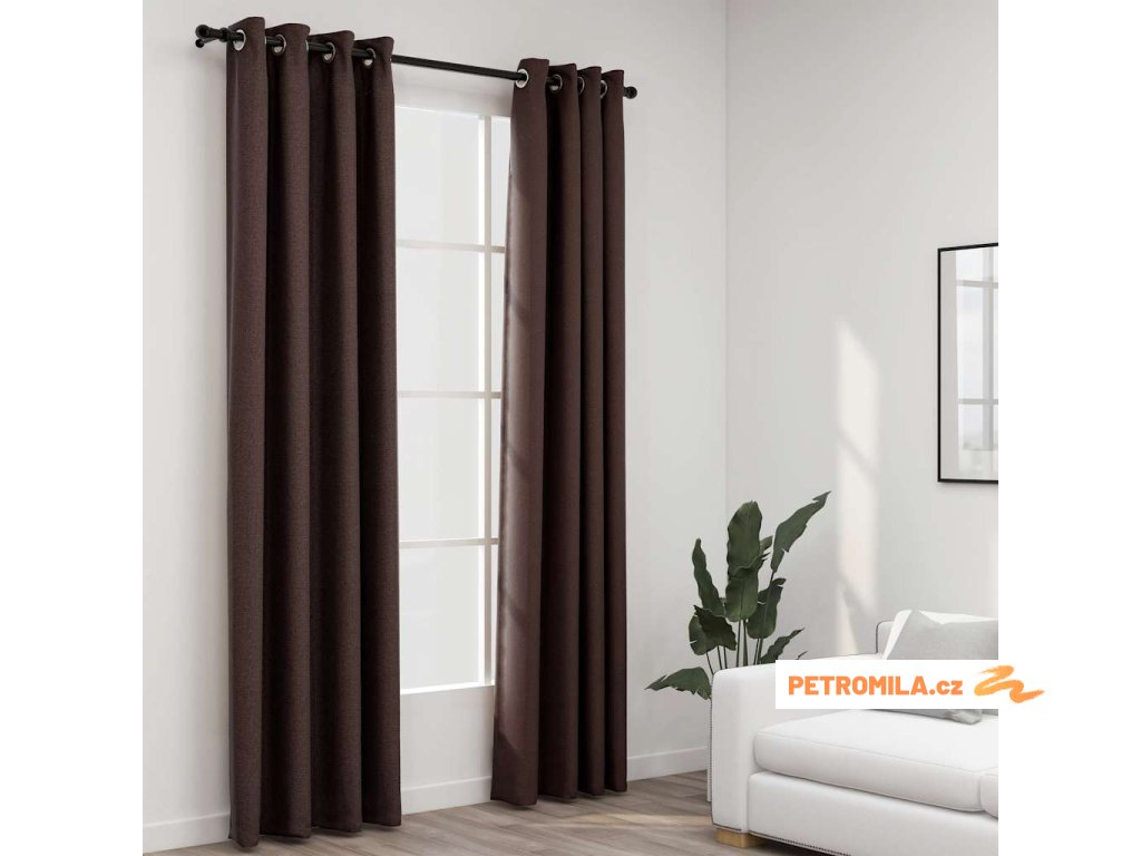 Zatemňovací závěsy s kroužky vzhled lnu 2 ks taupe 140 x 245 cm