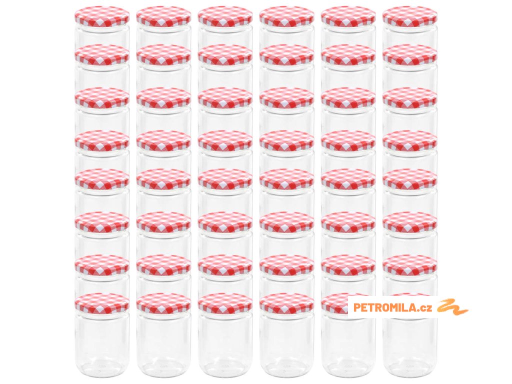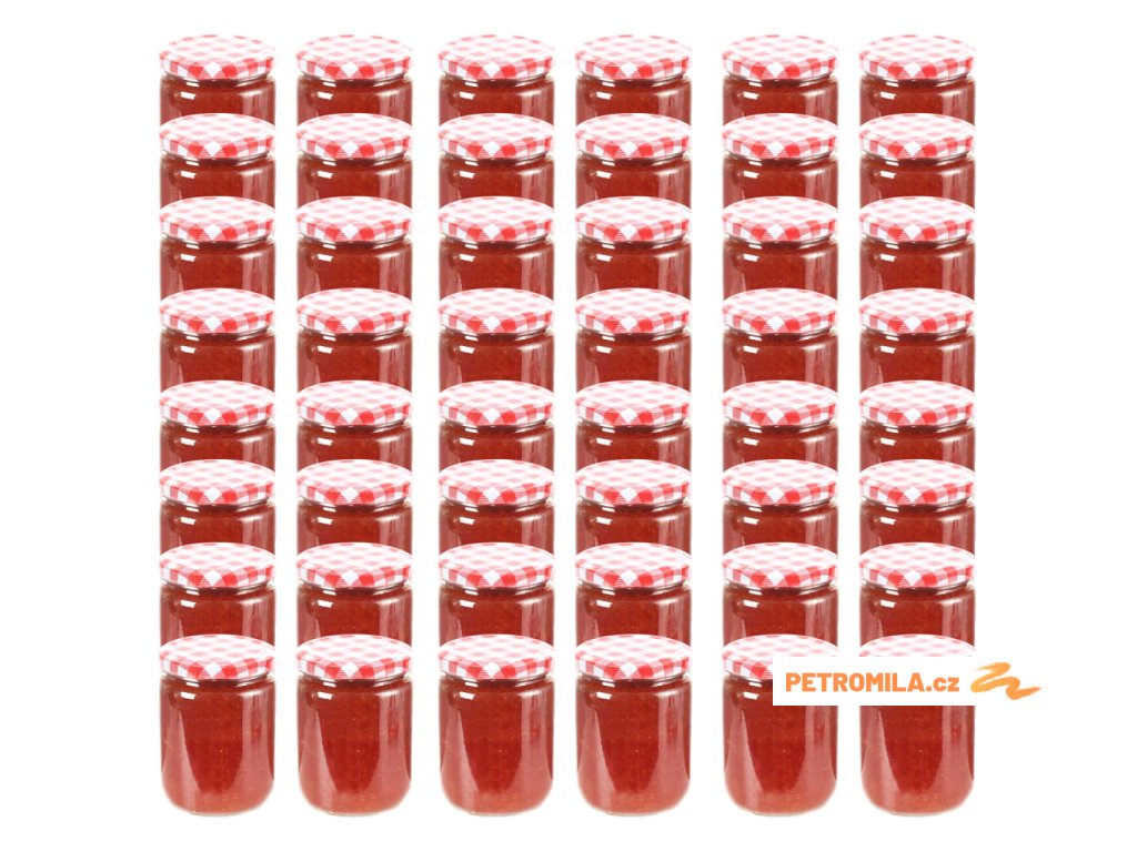 Zavařovací sklenice s bíločervenými víčky 48 ks 230 ml