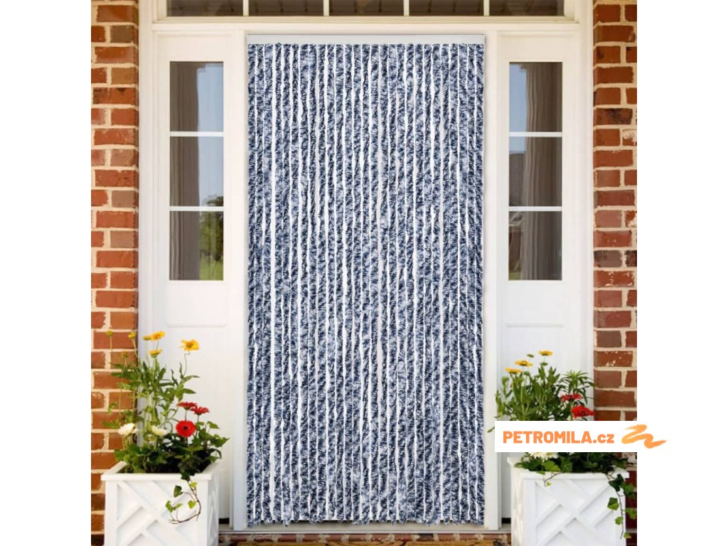 Závěs proti hmyzu modrý a bílý 100 x 230 cm žinylka