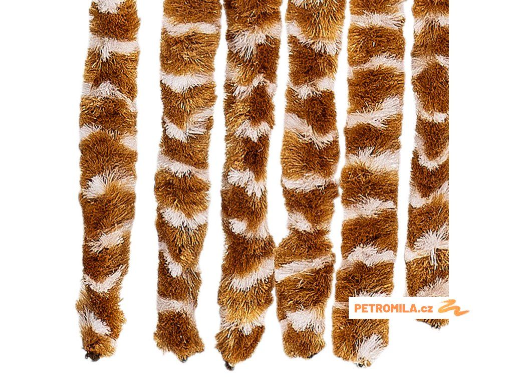 Vlákna jsou vyrobena z polypropylenové žinylky, závěs je proto tichý a bezpečný a zároveň vám umožňuje snadný průchod dveřmi.