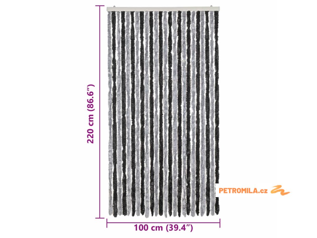 Závěs proti hmyzu šedý a černý 100 x 220 cm žinylka