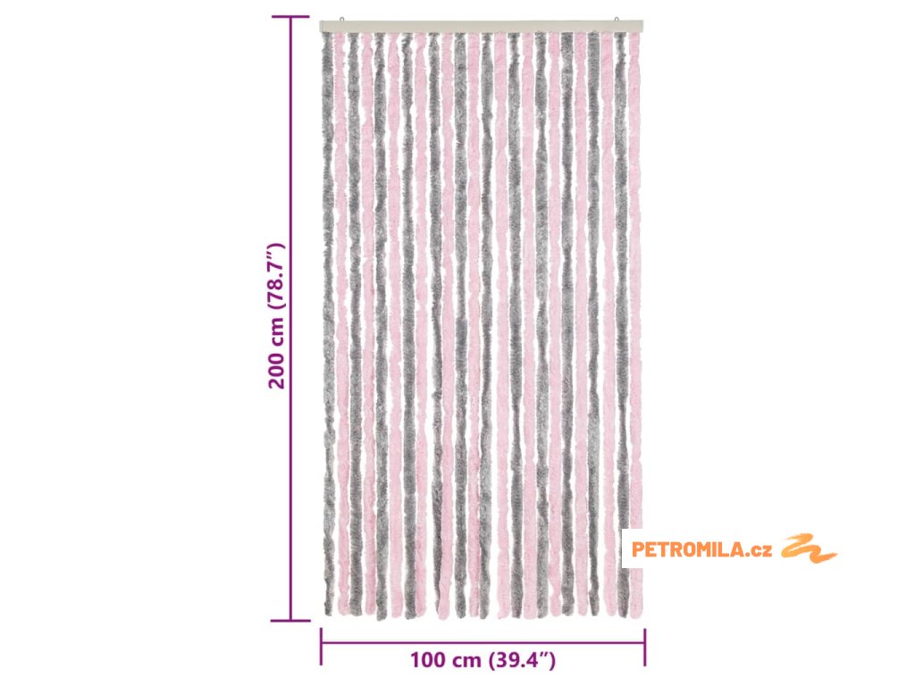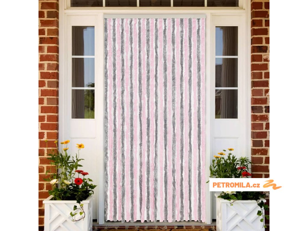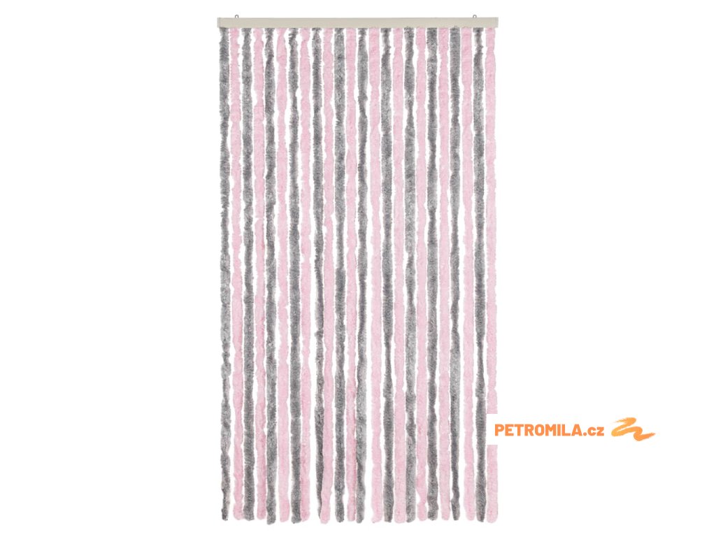 Závěs proti hmyzu stříbrošedý a růžový 100 x 200 cm žinylka