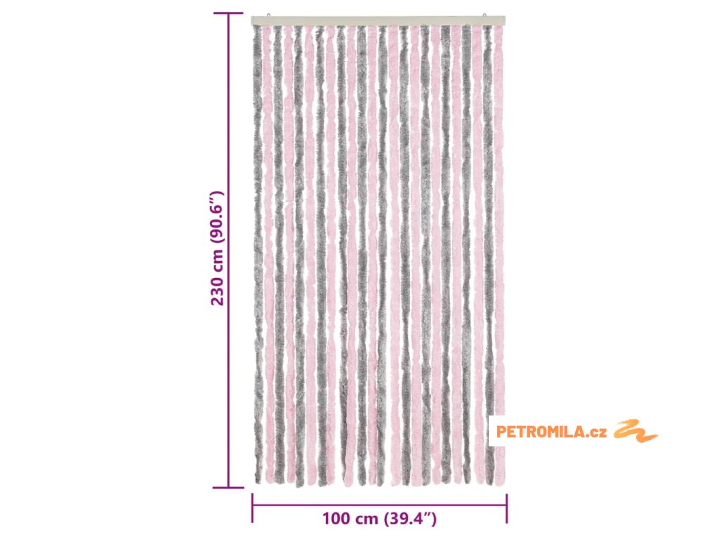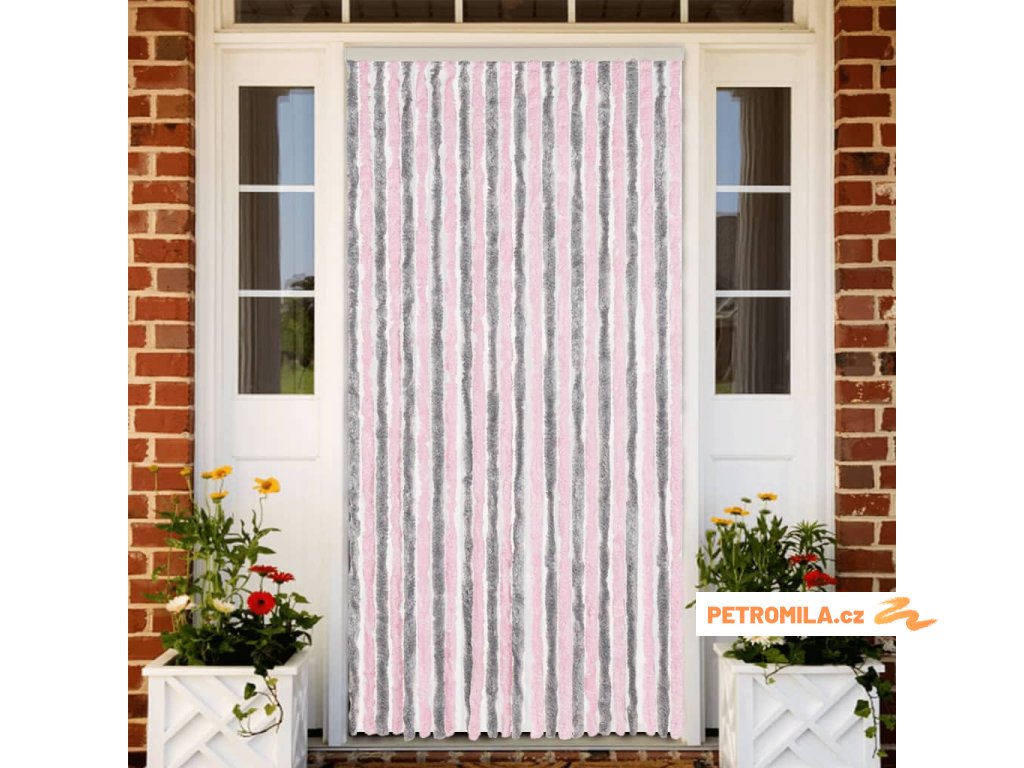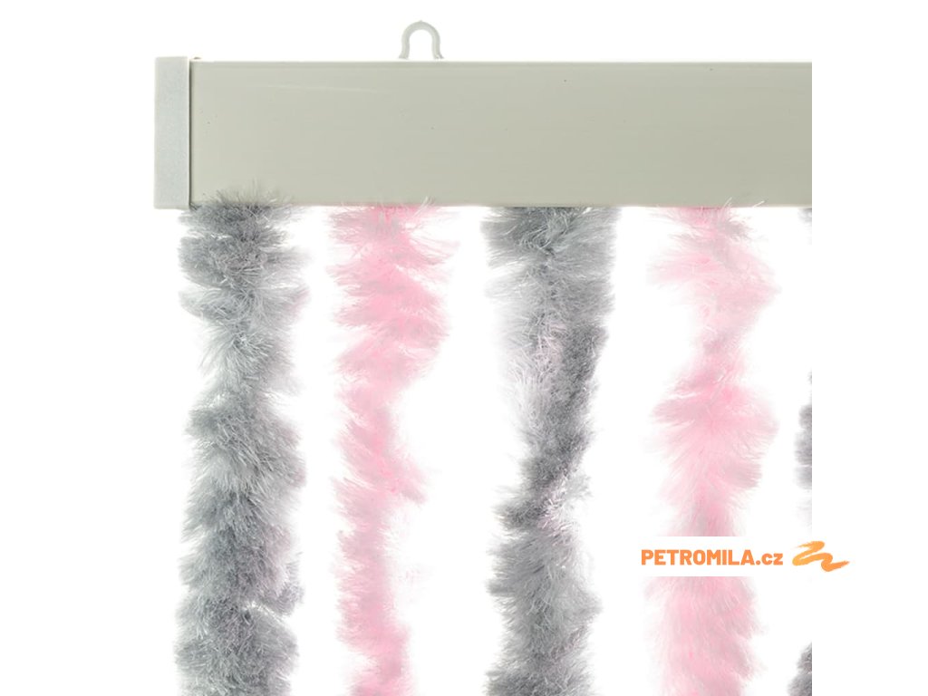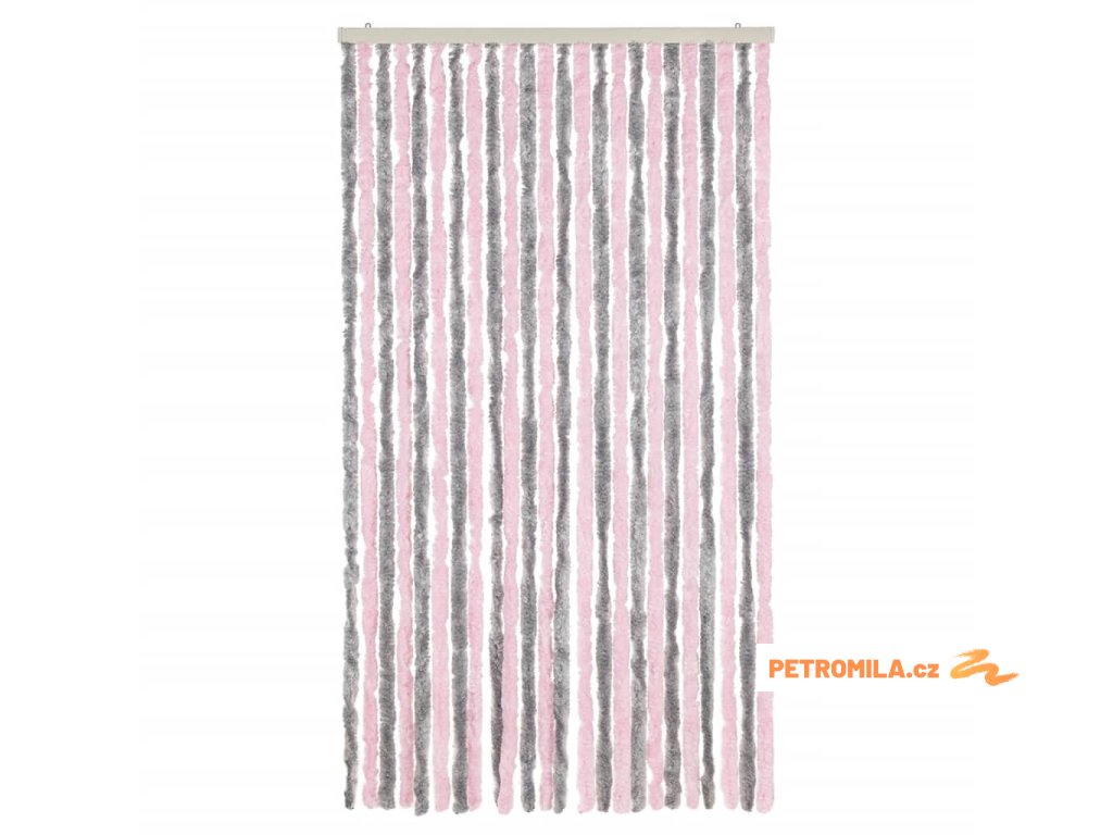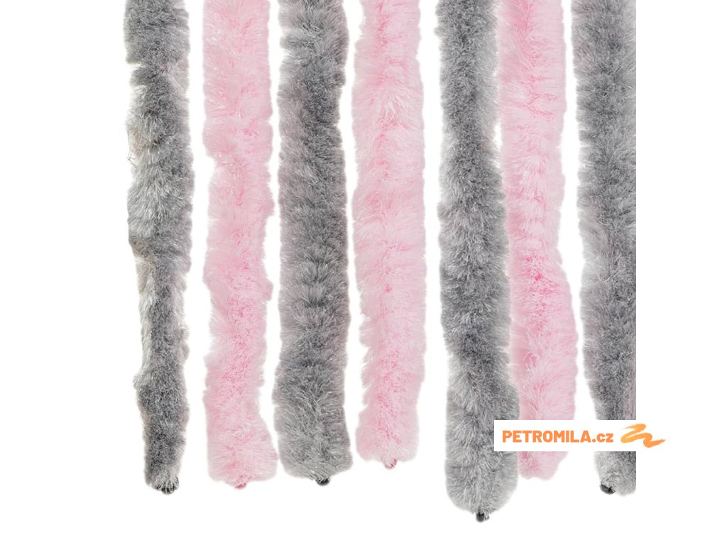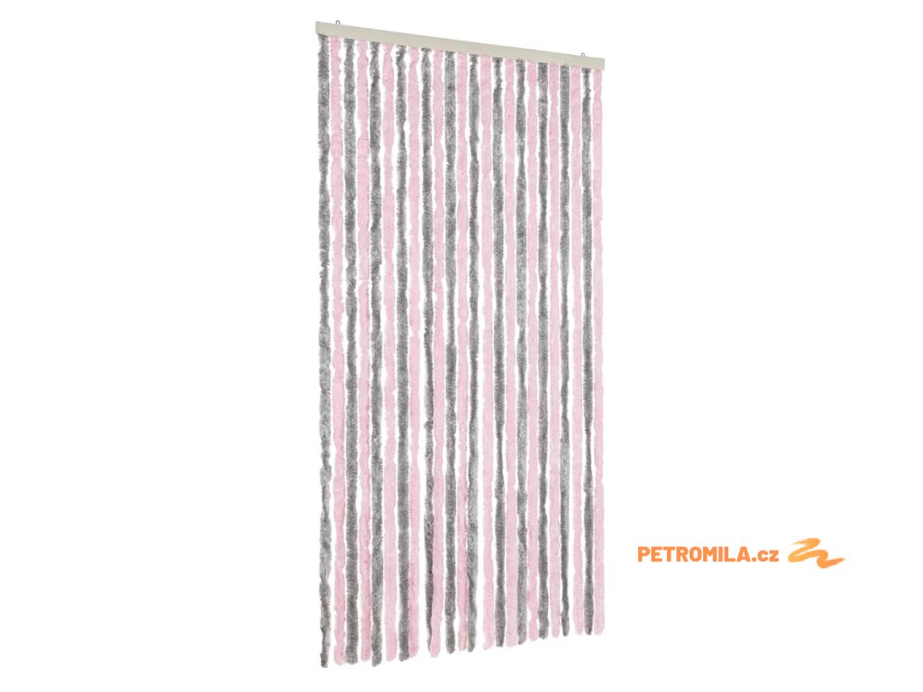 Závěs proti hmyzu stříbrošedý a růžový 100 x 230 cm žinylka