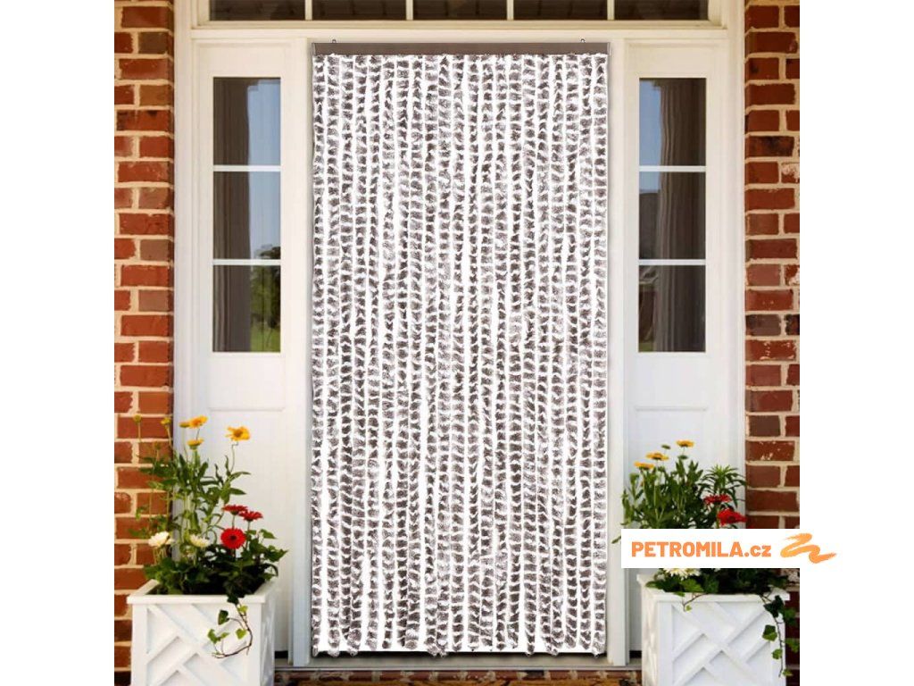 Závěs proti hmyzu taupe a bílý 90 x 220 cm Chenille