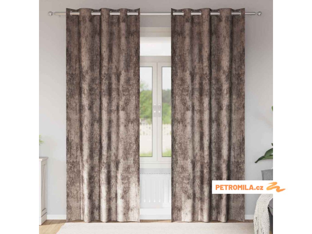 Závěs se záclonami 2 pcs Cappuccino 225 x 140 cm samet