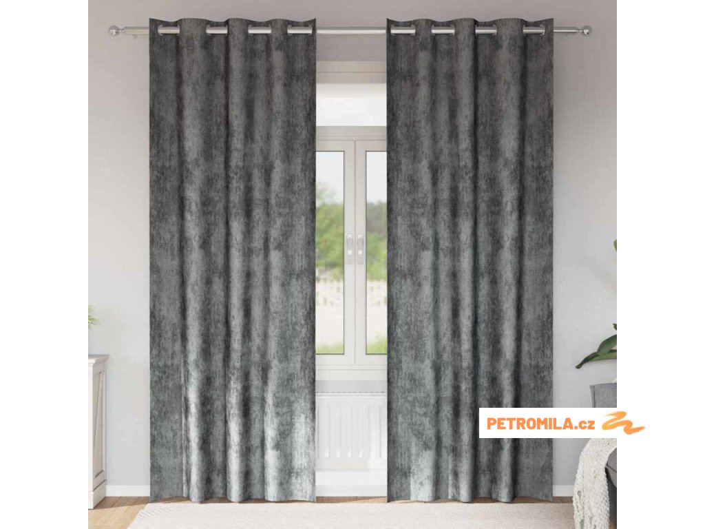 Závěs se záclonami 2 pcs Šedá 245 x 140 cm samet
