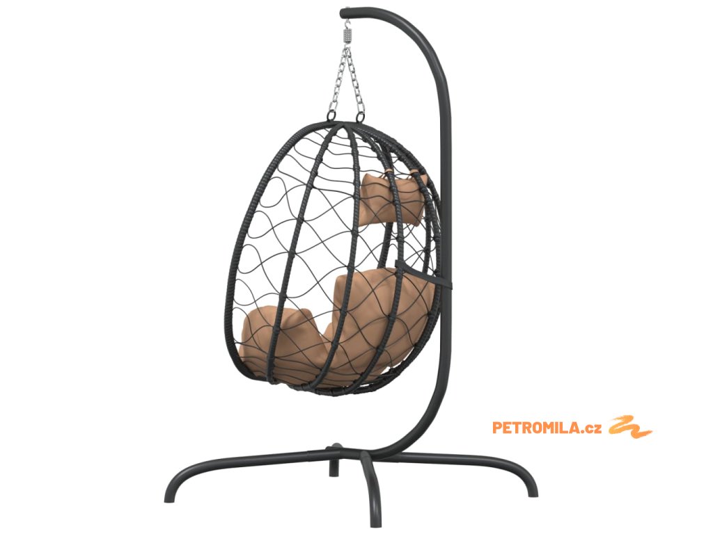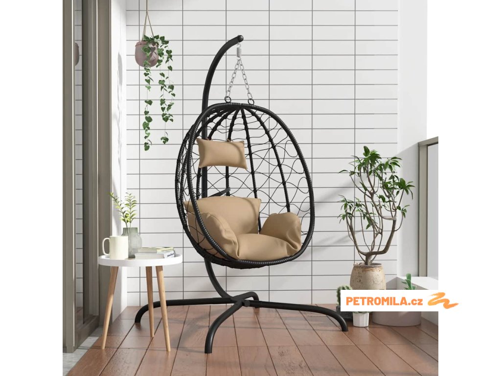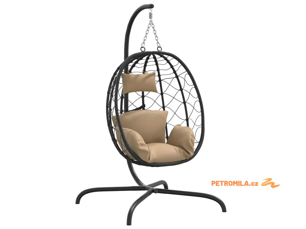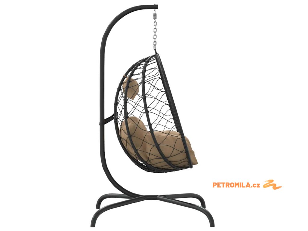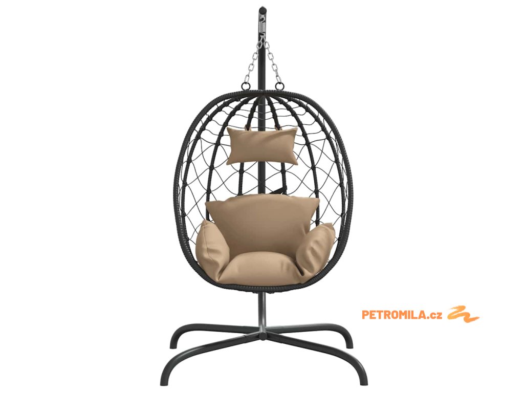 Závěsné křeslo ve tvaru vejce s polštářem, taupe, polyratan a ocel