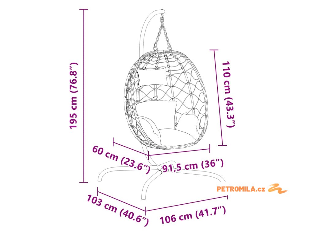 - Pohodlné sezení: Silně polstrovaný, odnímatelný polštář a polštář houpacího křesla ve tvaru vejce poskytují maximální pohodlí při sezení.