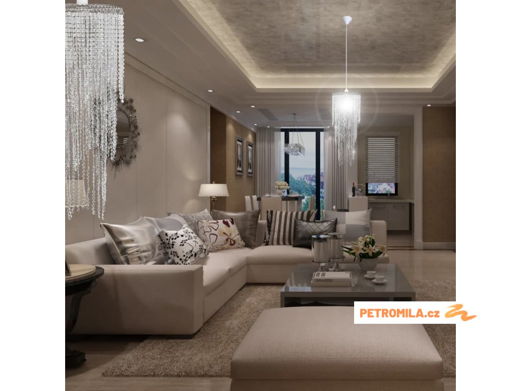Vysoce kvalitní korálky se opravdu jasně blyští, efektně zachycují a odrážejí světlo a vytvářejí hru barev napříč celým spektrem. Tento elegantní závěsný lustr ozdobí váš domov velmi luxusním způsobem.