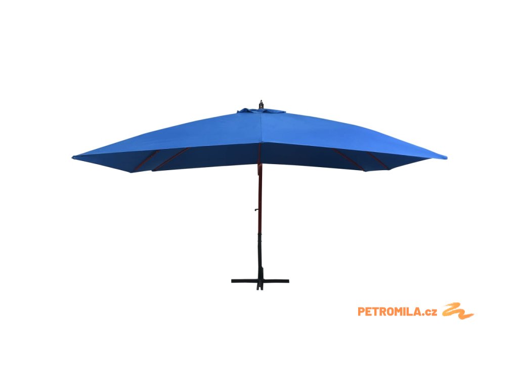 Závěsný slunečník s dřevěnou tyčí 400 x 300 cm modrý
