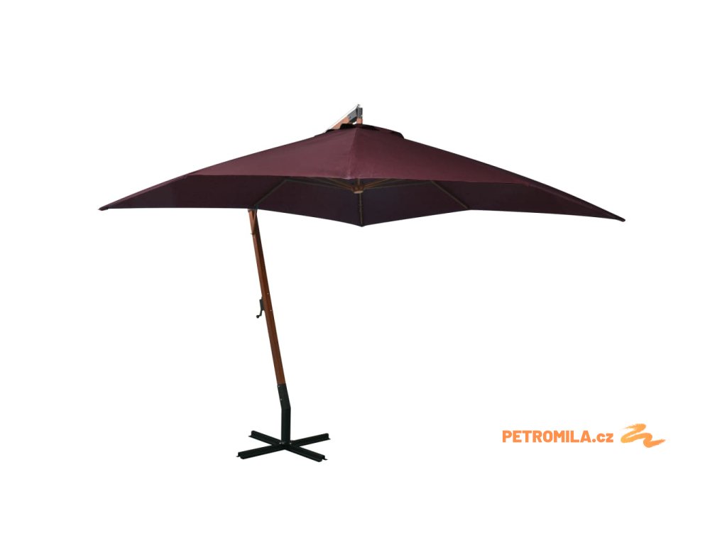 Závěsný zahradní slunečník s tyčí bordó 3 x 3 m masivní jedle