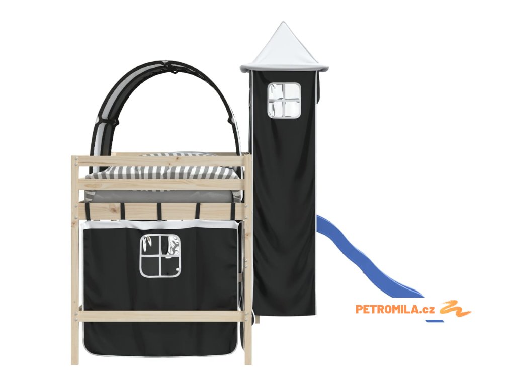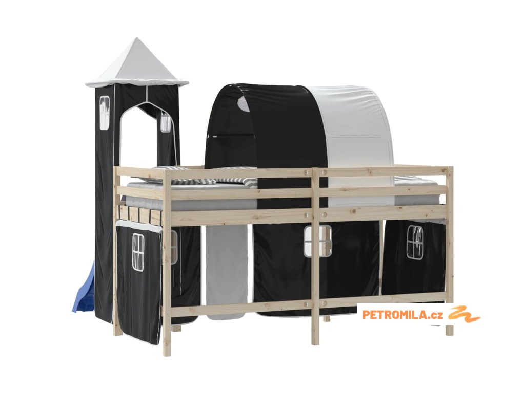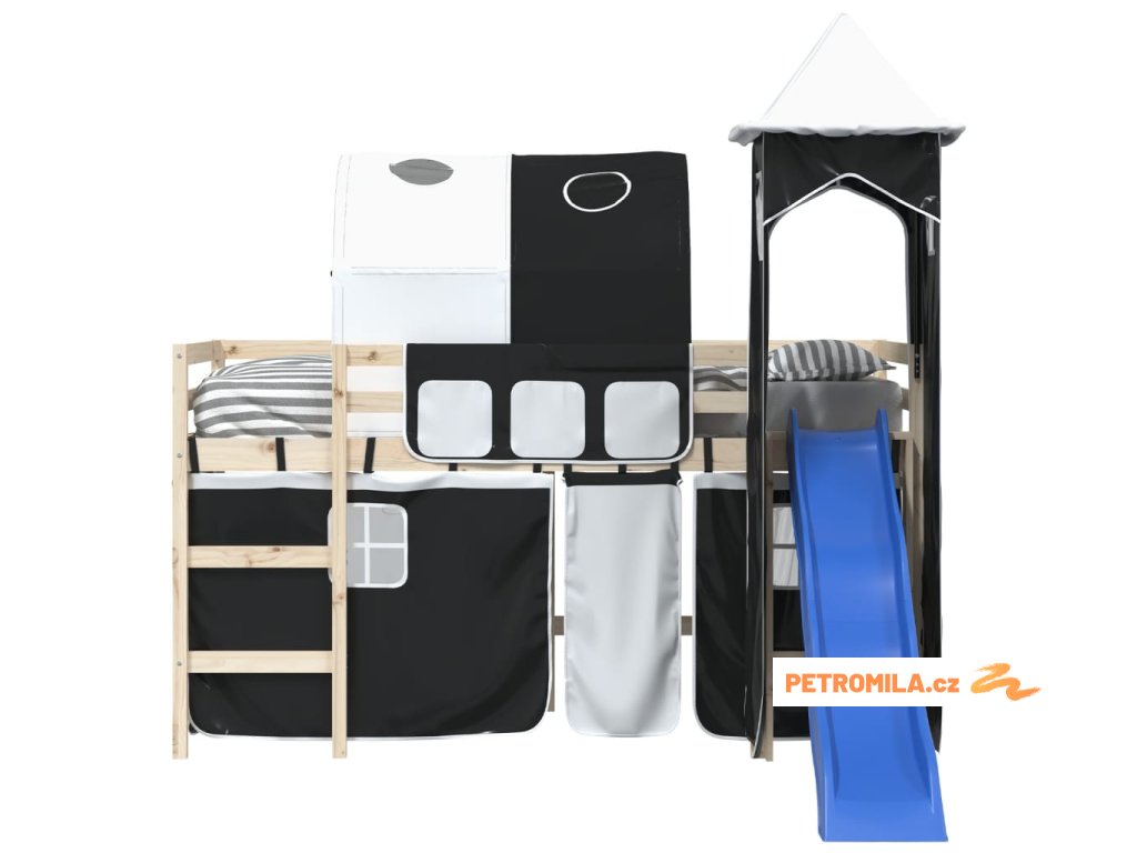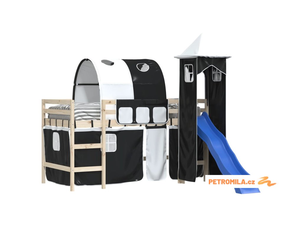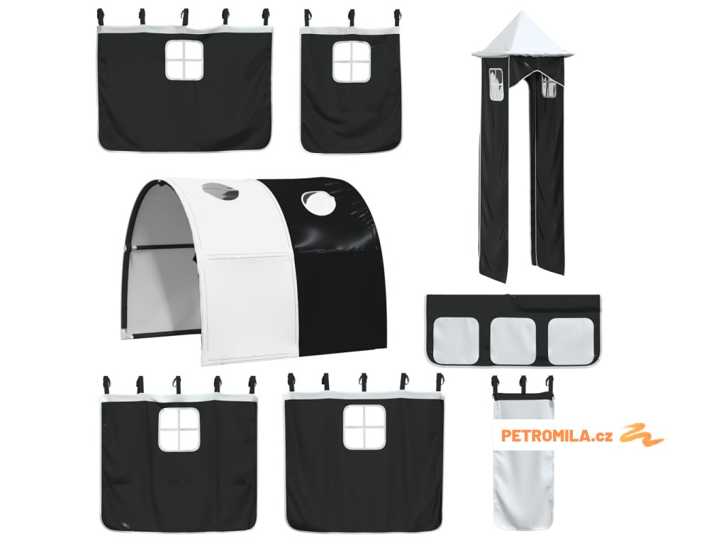Závěsy na patrovou postel s tunelem a věží bílé a černé