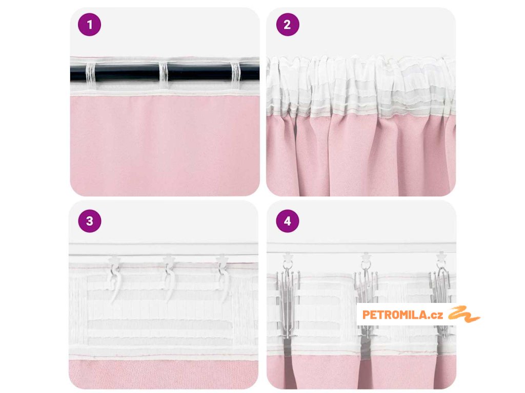 - Manuální otevírací systém: Design je jednoduchý a uživatelsky přívětivý. Systém s háčky a kroužky zajišťuje bezproblémový pohyb záhybů a elegantní fungování závěsů.