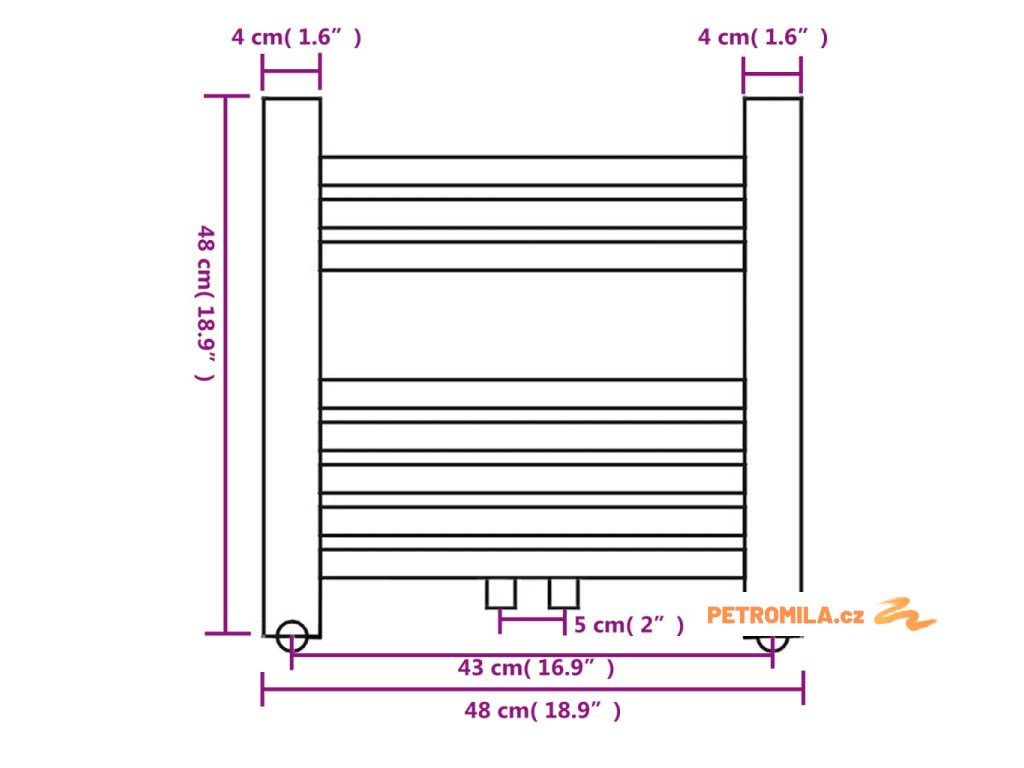 Žebříkový radiátor na ručníky rovný ústřední topení 480 x 480 mm