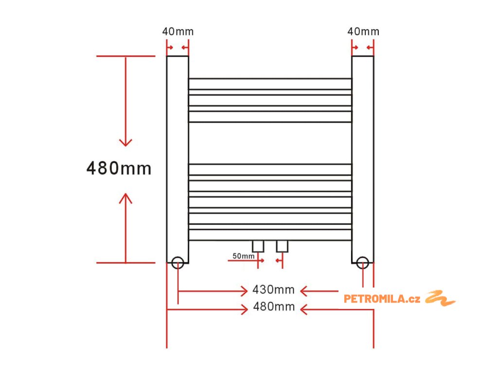 Žebříkový radiátor obloukový, ústřední topení 480 x 480 mm boční a střední přípojka