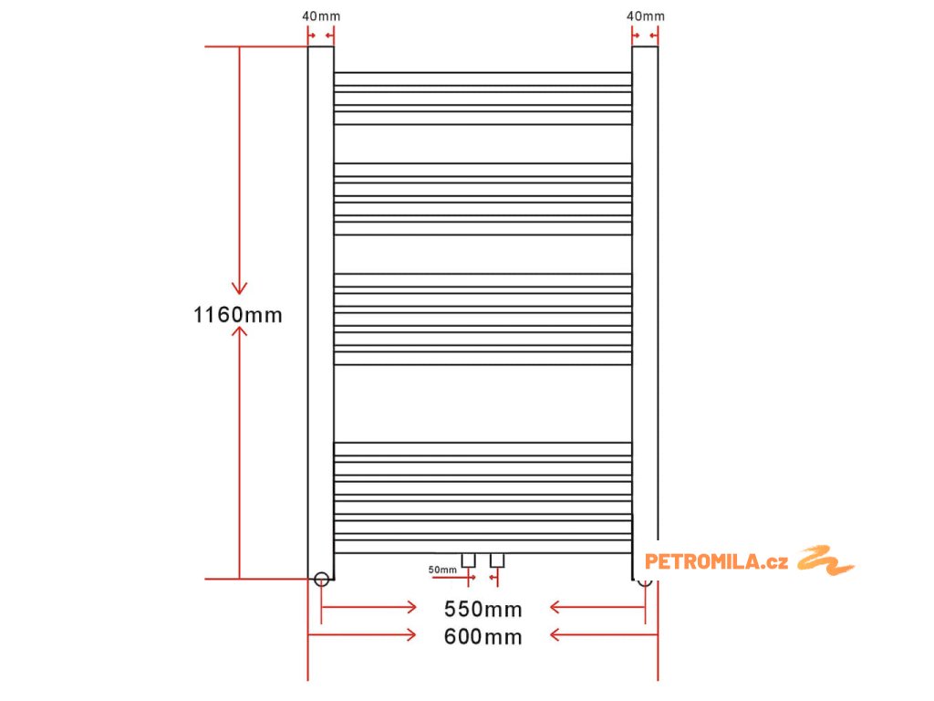 - Vzdálenost mezi středy dvou postranních přípojek: 550 mm