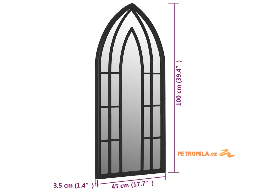 Zrcadlo černé 100 x 45 cm železo do interiéru