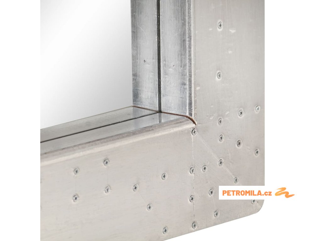 Toto zrcadlo do předsíně je vyrobené z kovu a jeho design je ozvláštněný odkrytými šrouby. Je robustní a odolné, navíc se dá snadno očistit vlhkým hadříkem.