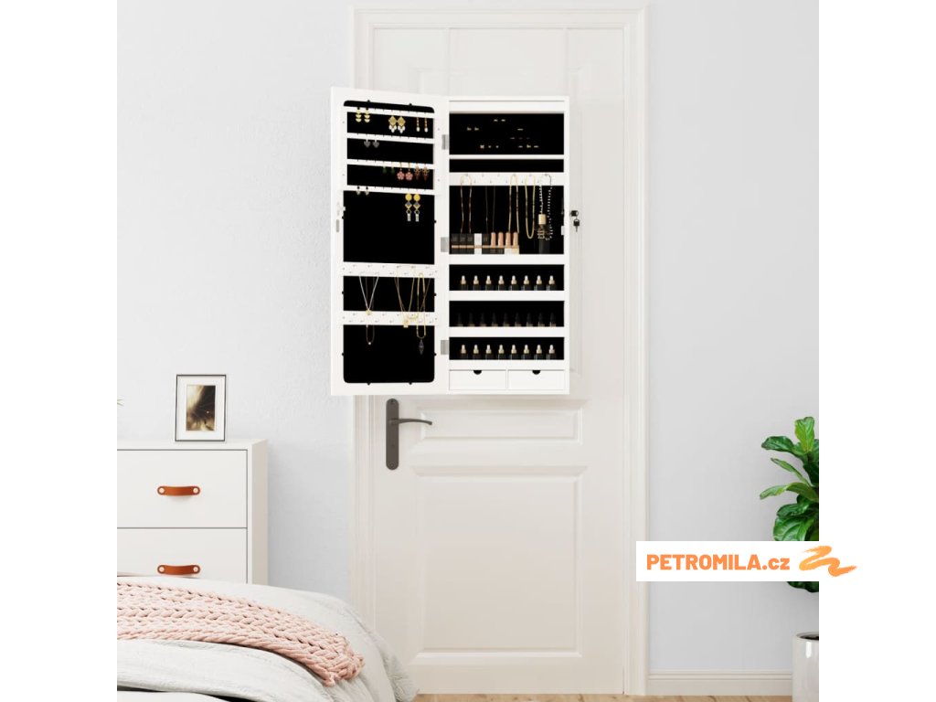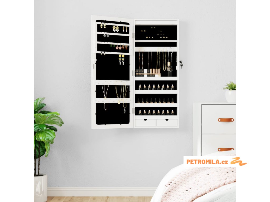 Zrcadlová šperkovnice s LED světly nástěnná bílá