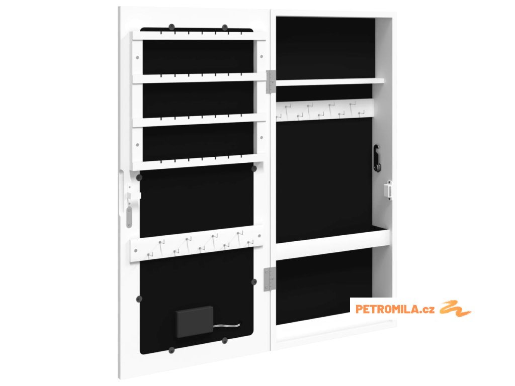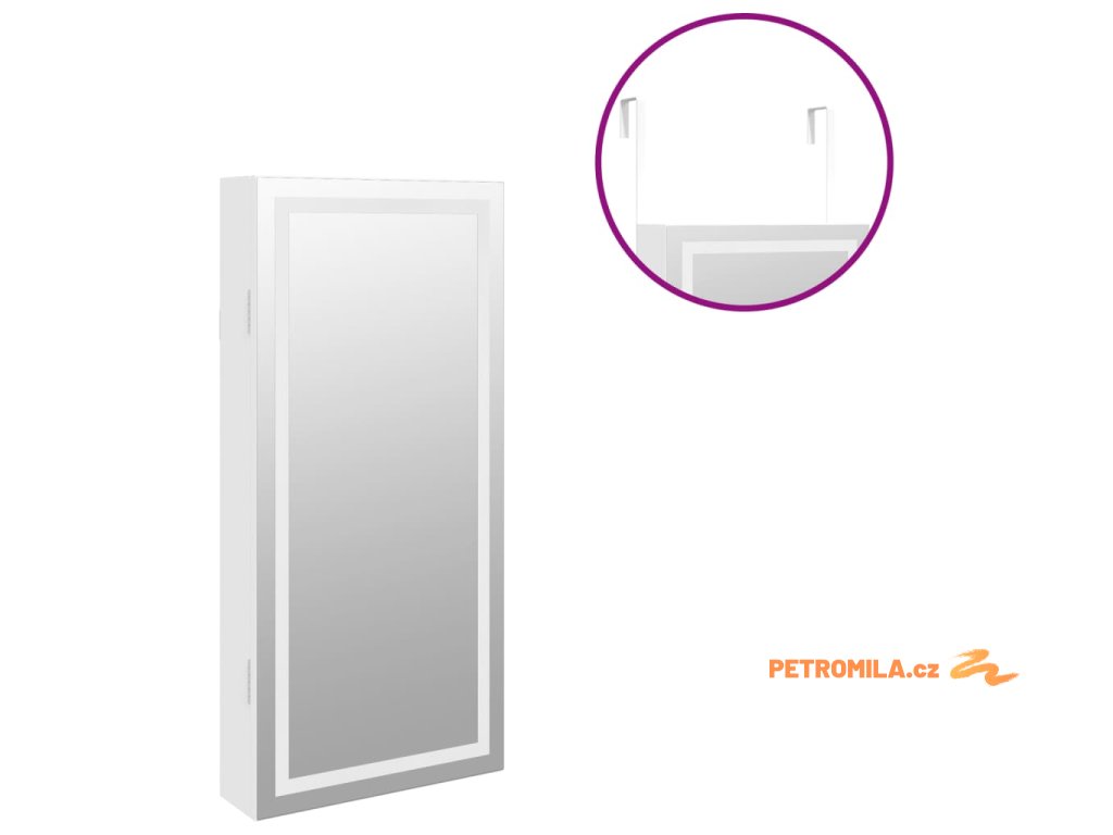 Zrcadlová šperkovnice s LED světly nástěnná bílá