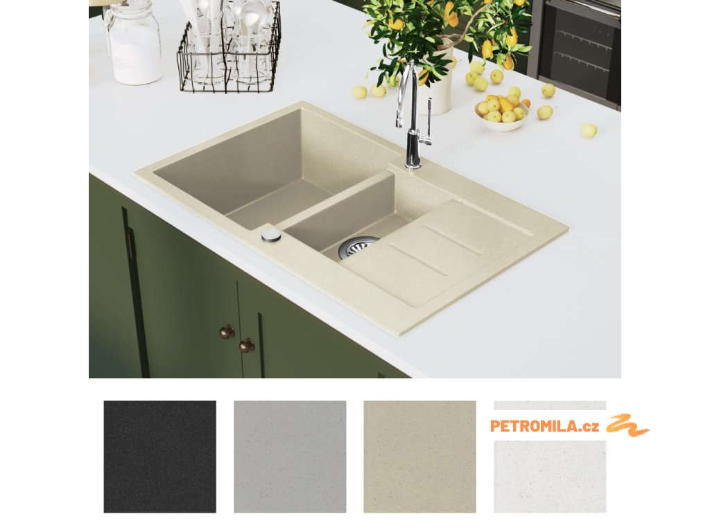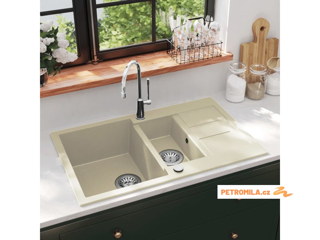 Žulový kuchyňský dřez dvojitý béžový