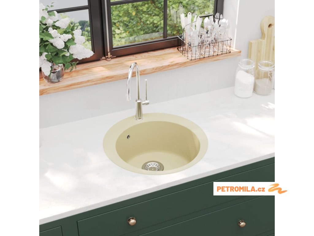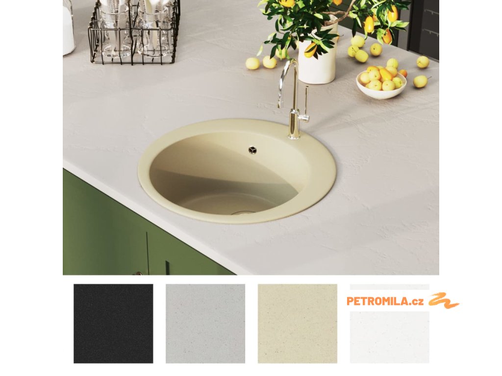 Žulový kuchyňský dřez jednoduchý kulatý béžový