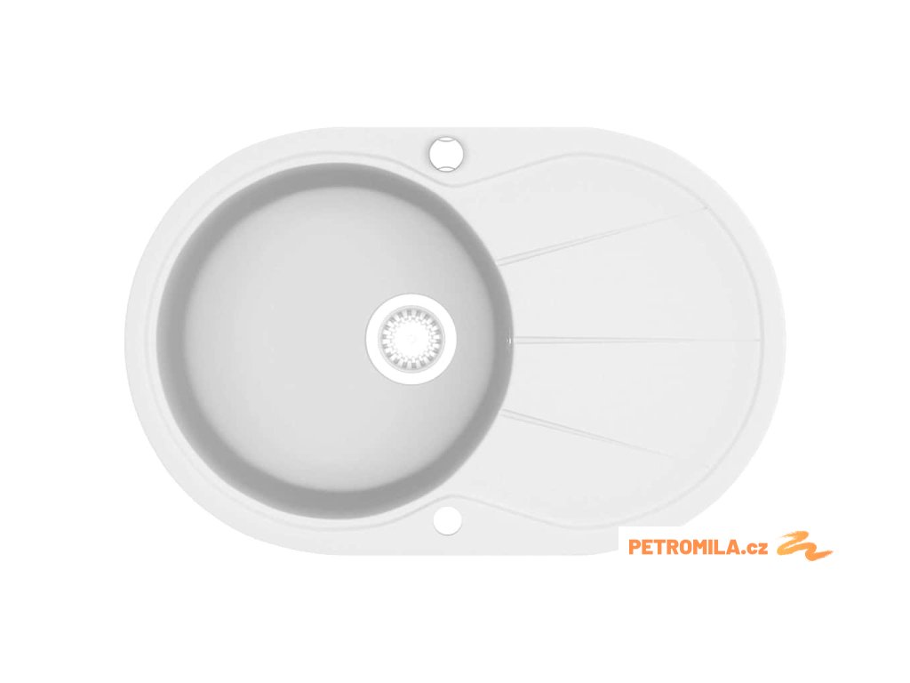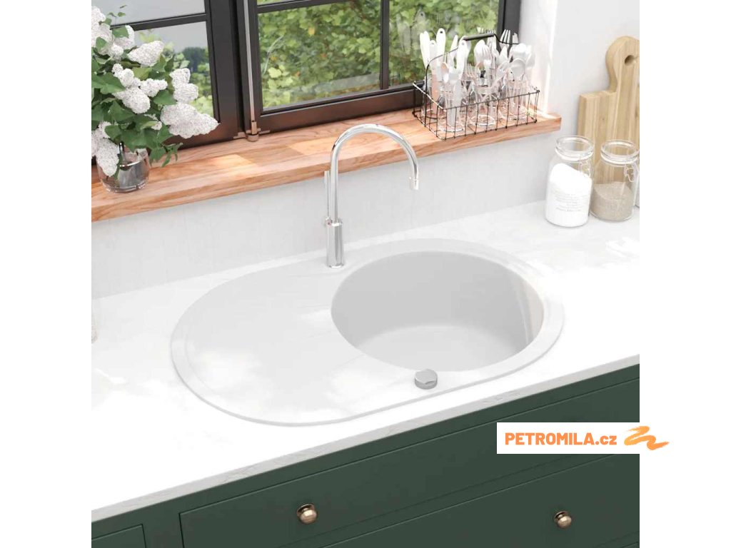 Žulový kuchyňský dřez jednoduchý oválný bílý