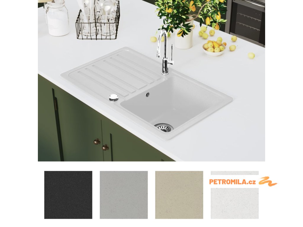 Žulový kuchyňský dřez single s odkapávačem reverzibilní bílá