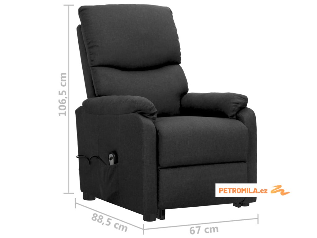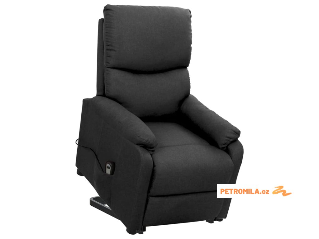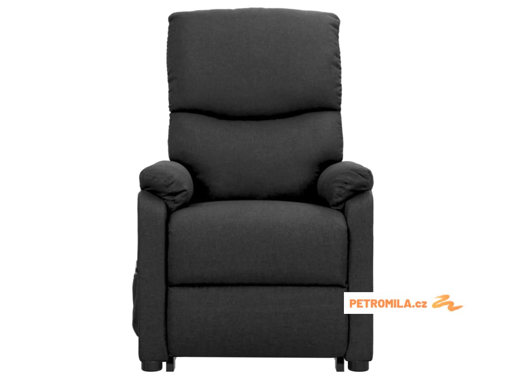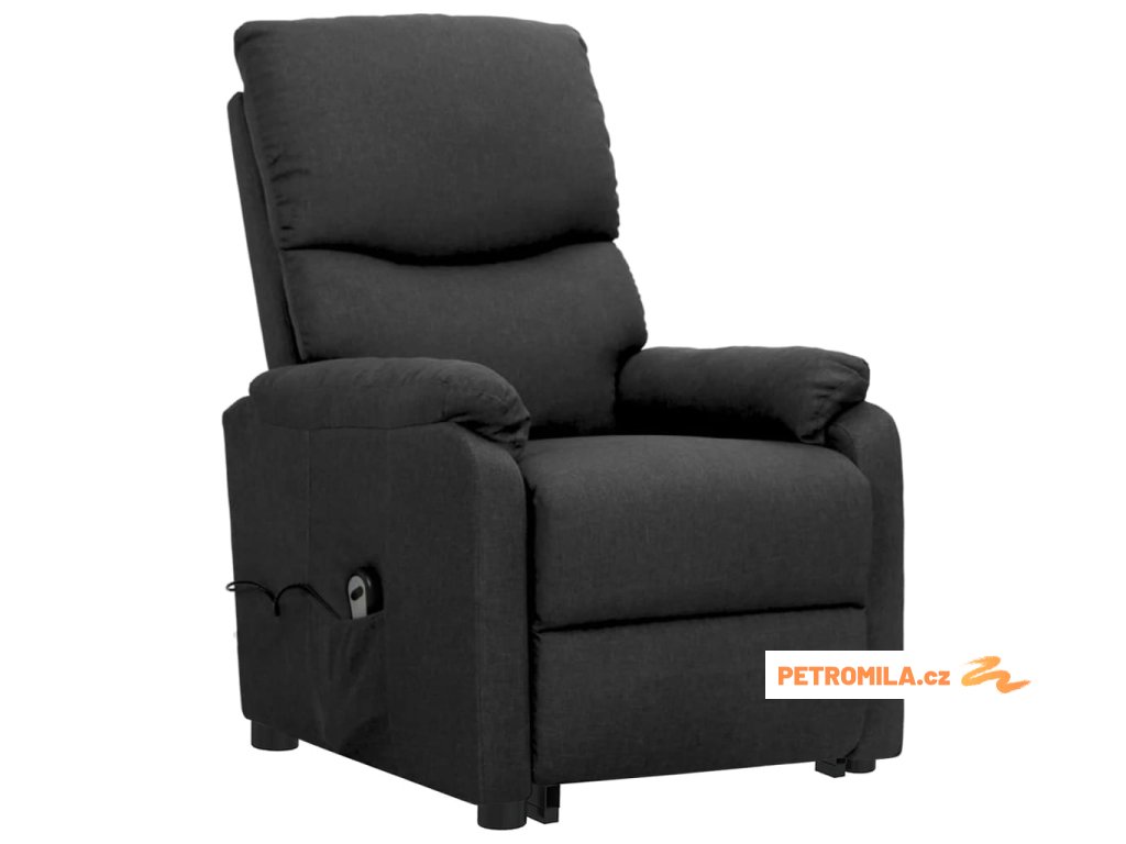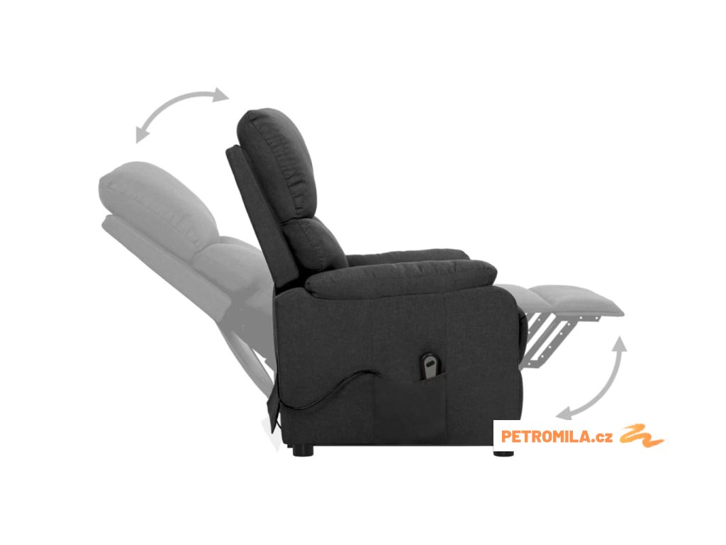 Elektrické zvedací masážní polohovací křeslo tmavě šedé textil