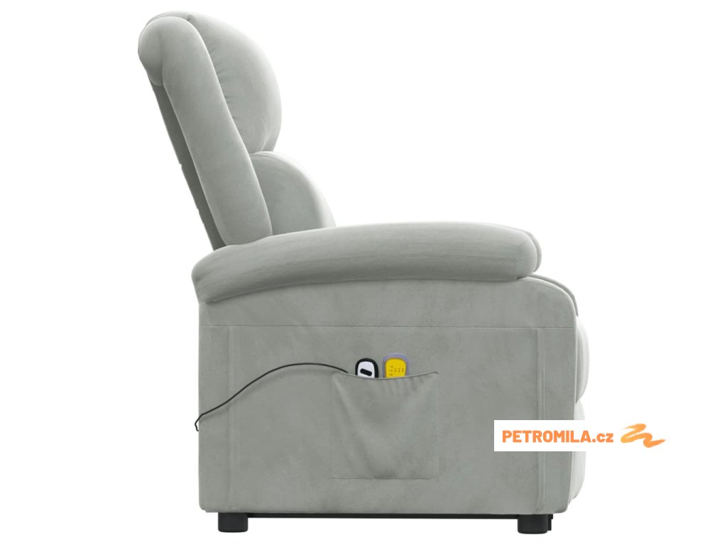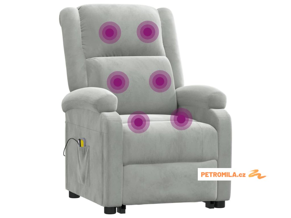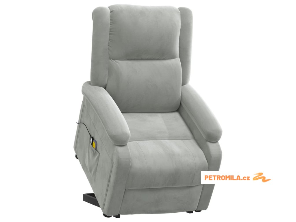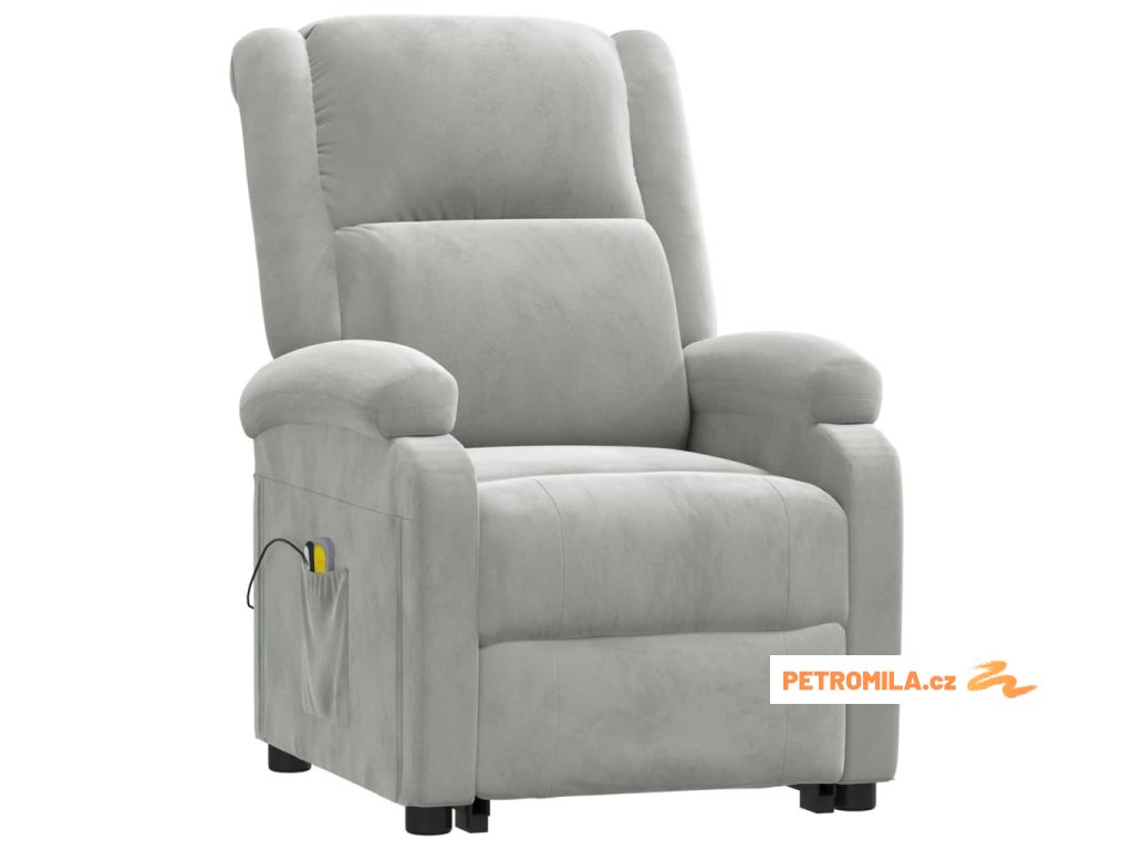 Zvedací masážní křeslo světle šedé samet