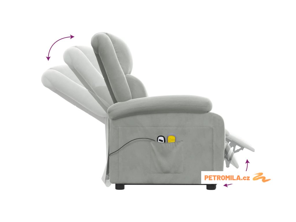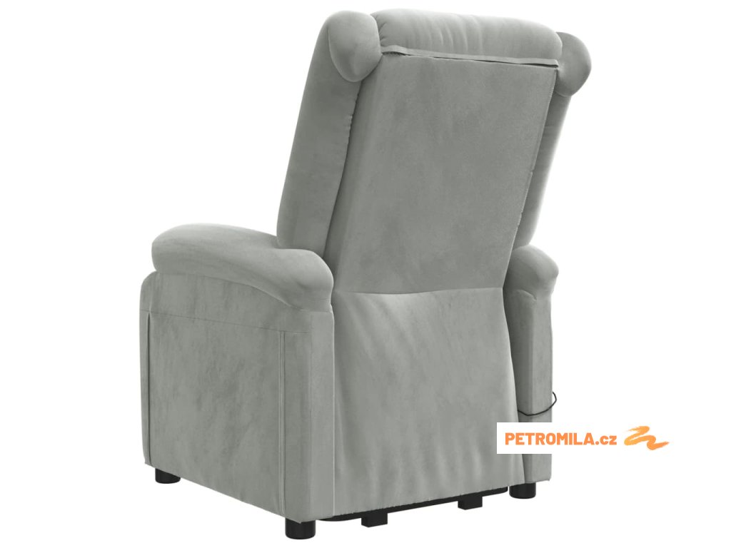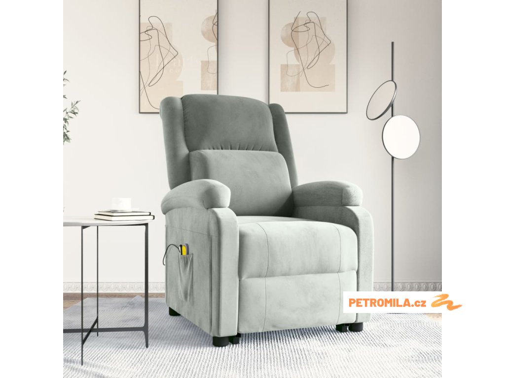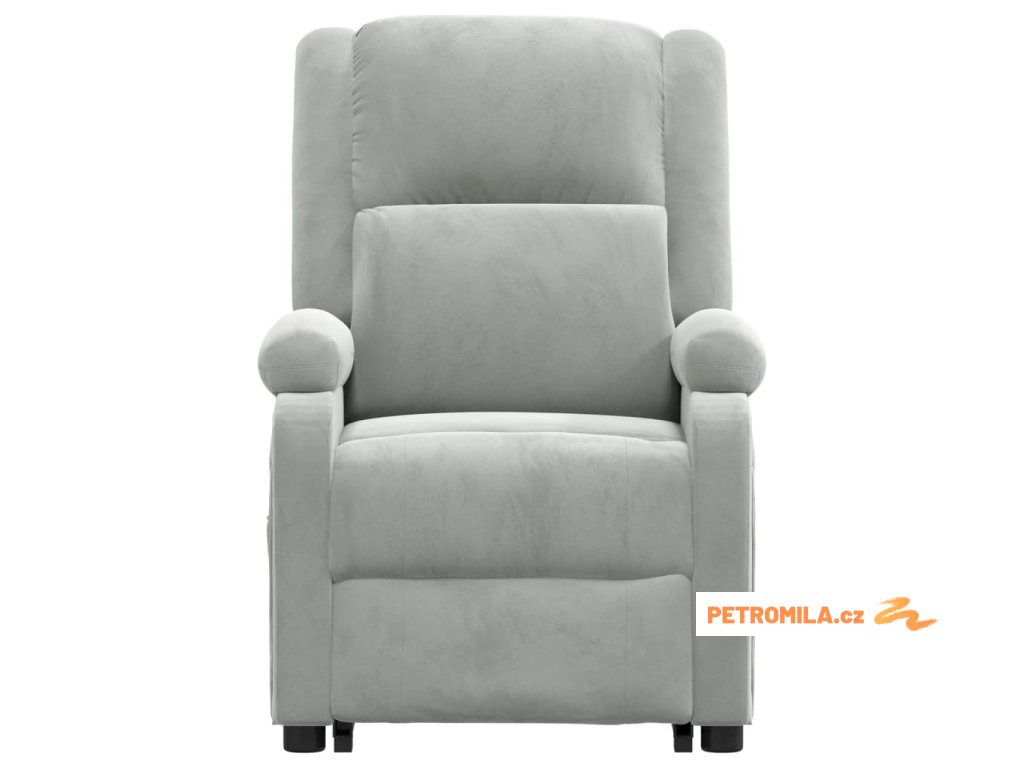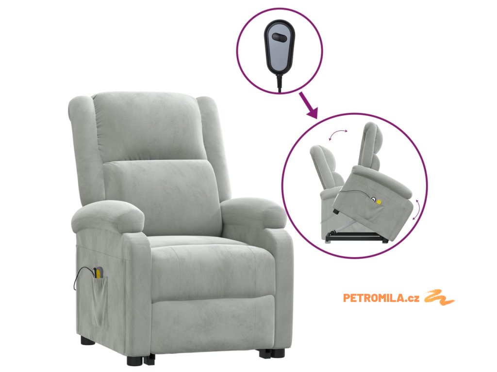 Zvedací masážní křeslo světle šedé samet