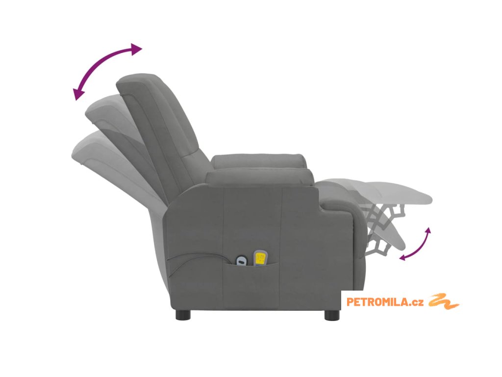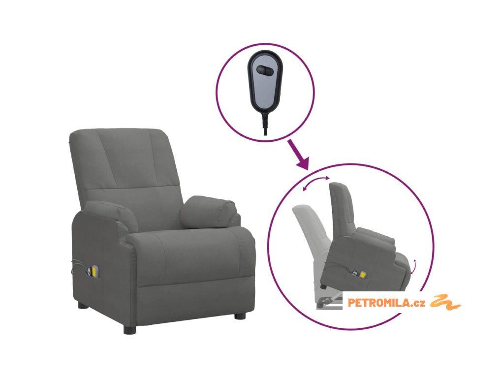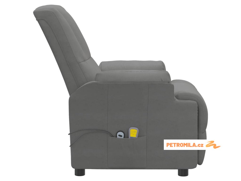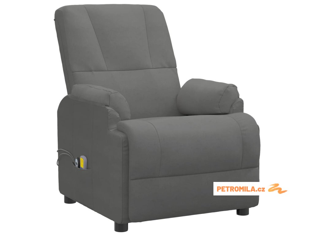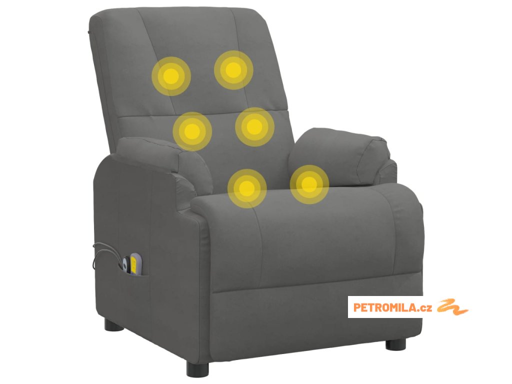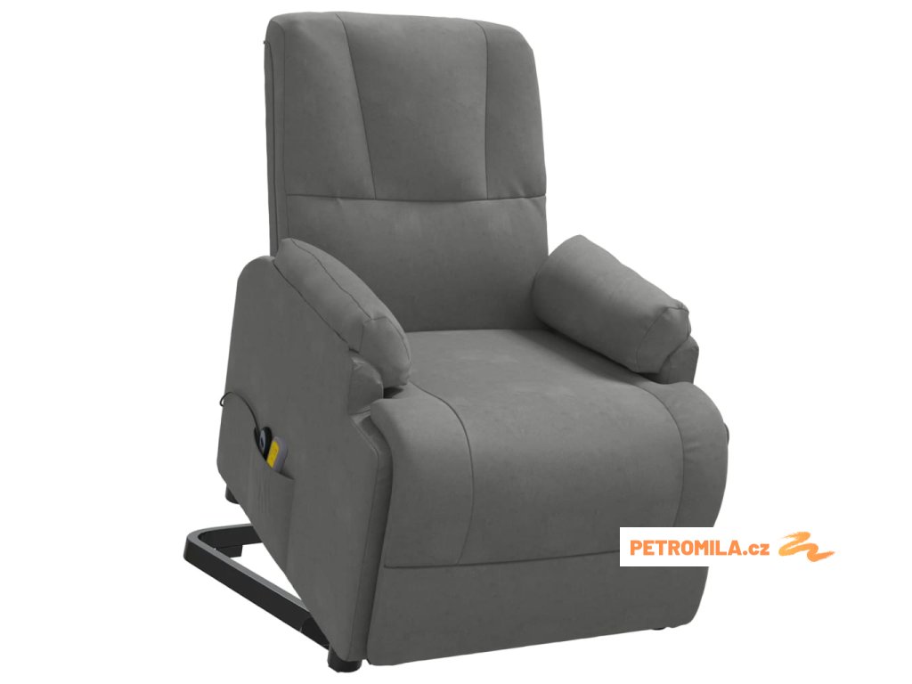 Zvedací masážní křeslo tmavě šedé umělá semišová kůže