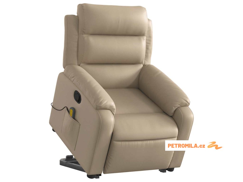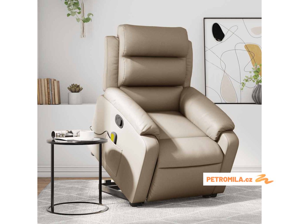 Zvedací masážní polohovací křeslo cappuccino umělá kůže