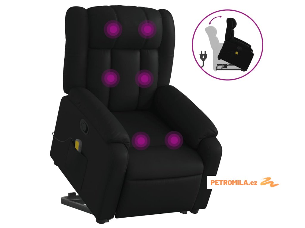 Zvedací masážní polohovací křeslo černé umělá kůže