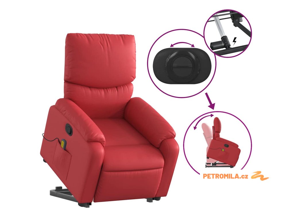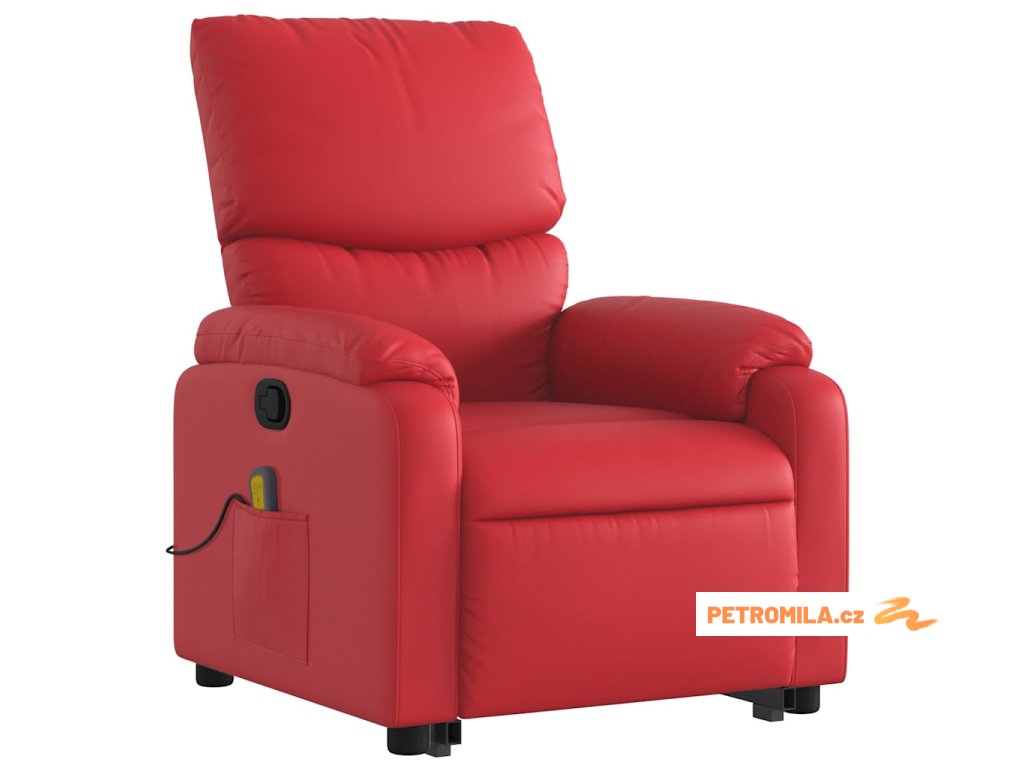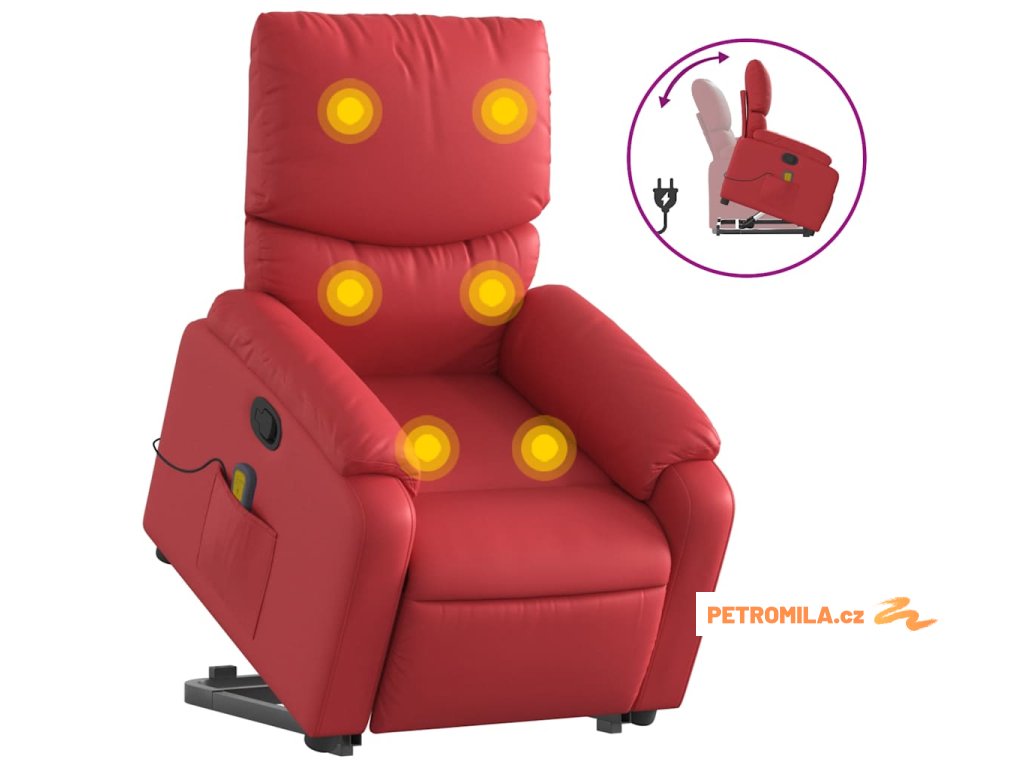 Zvedací masážní polohovací křeslo červené umělá kůže