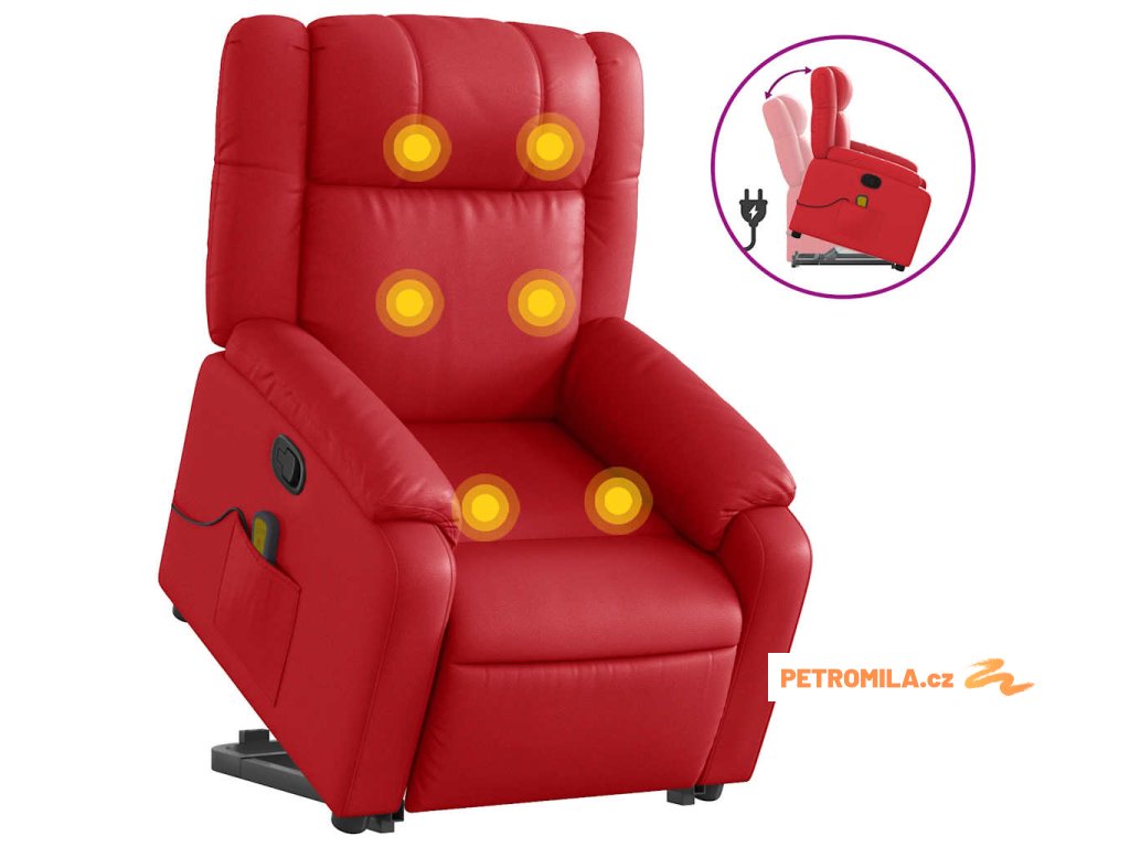 Zvedací masážní polohovací křeslo červené umělá kůže