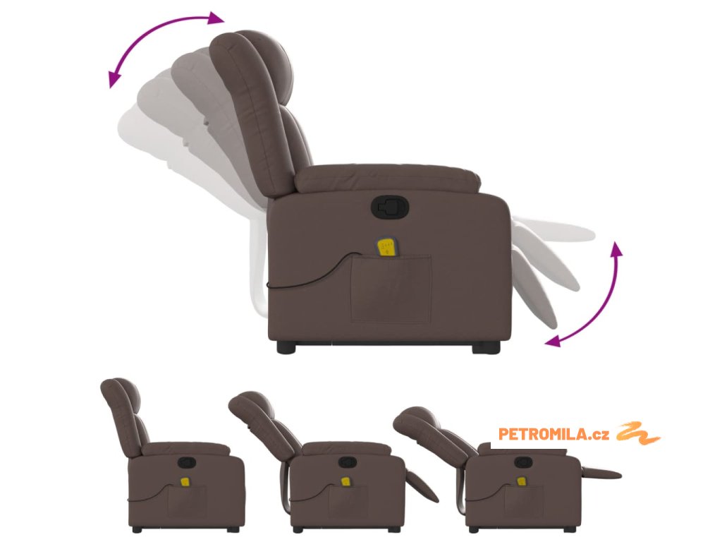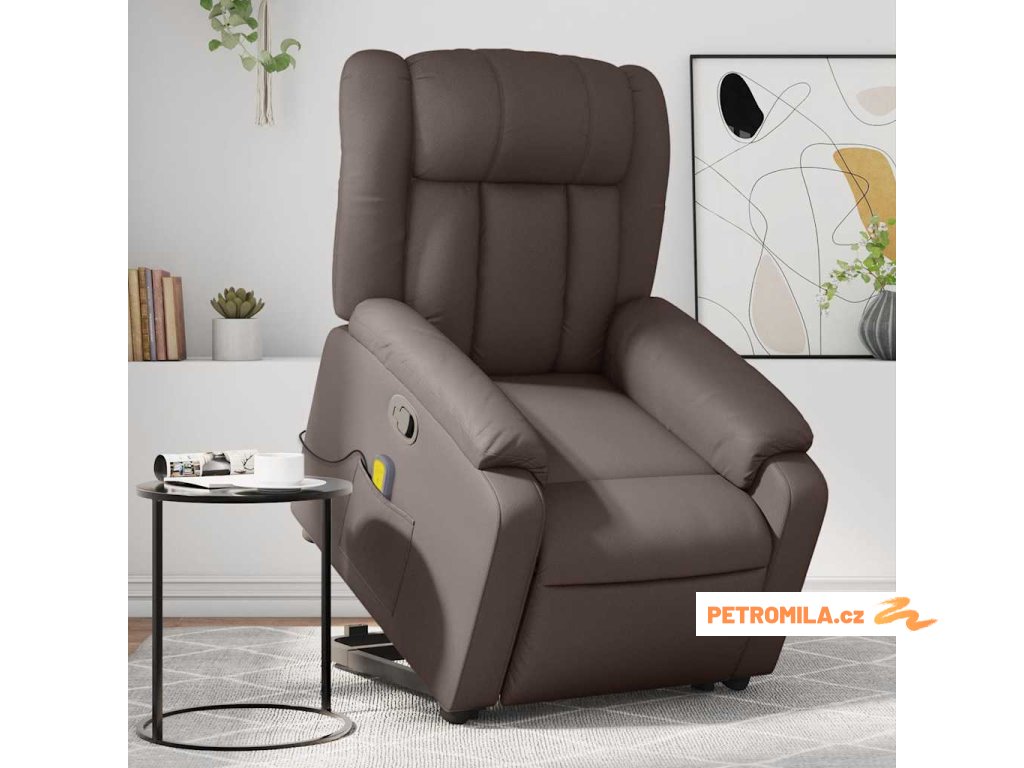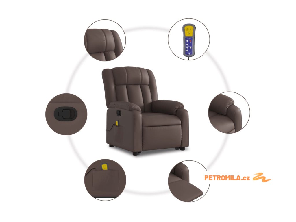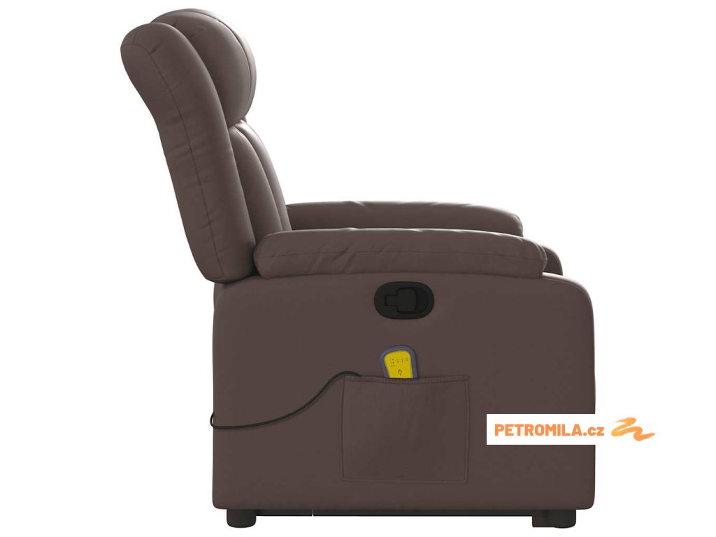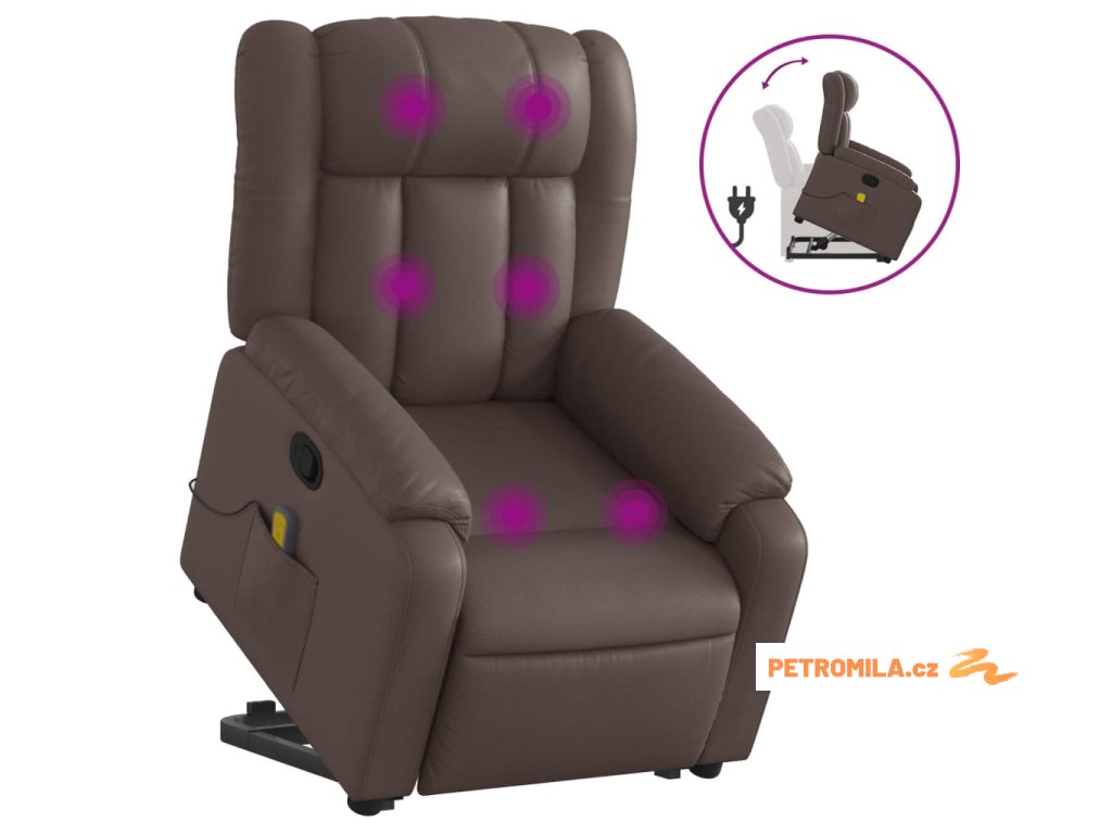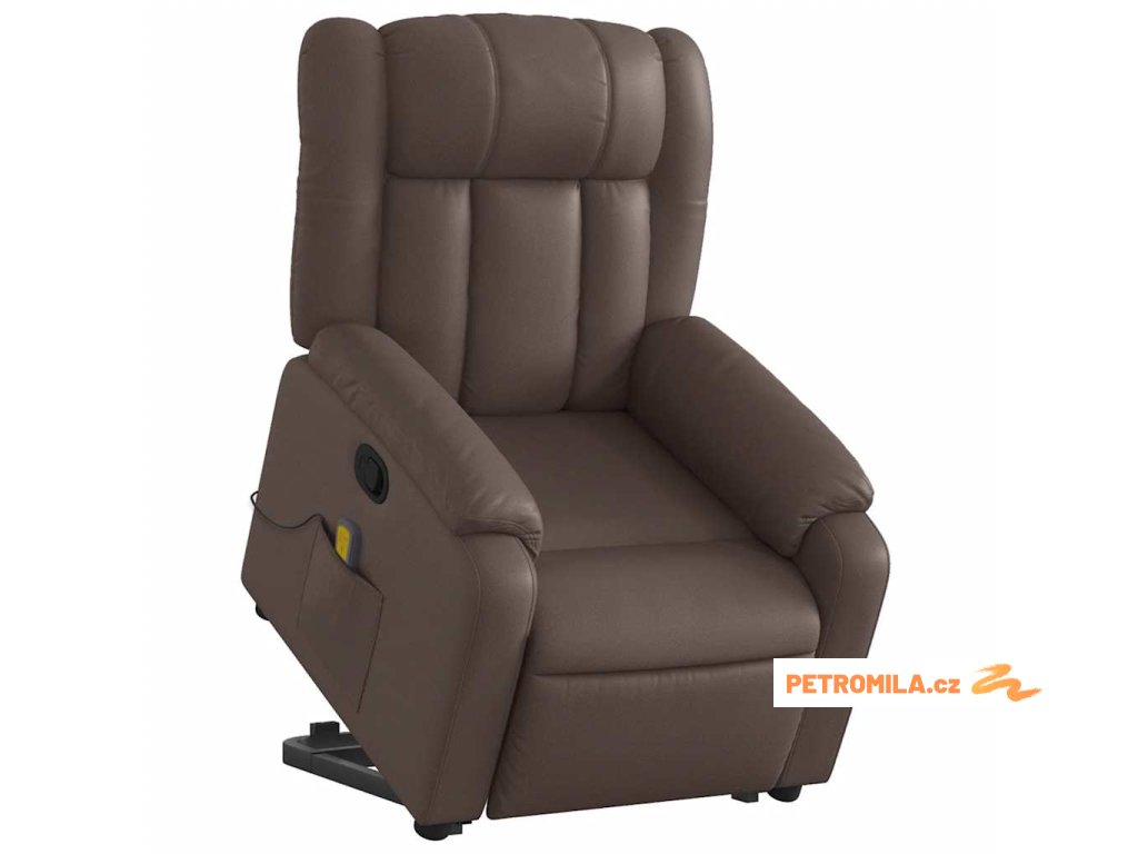 Zvedací masážní polohovací křeslo hnědé umělá kůže