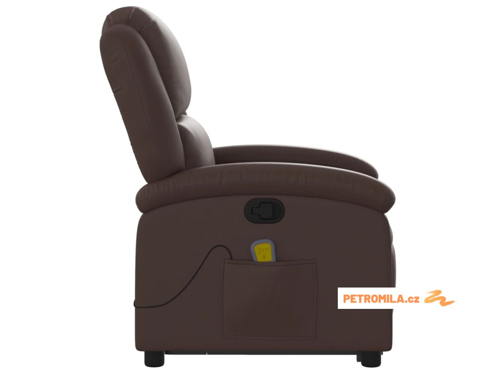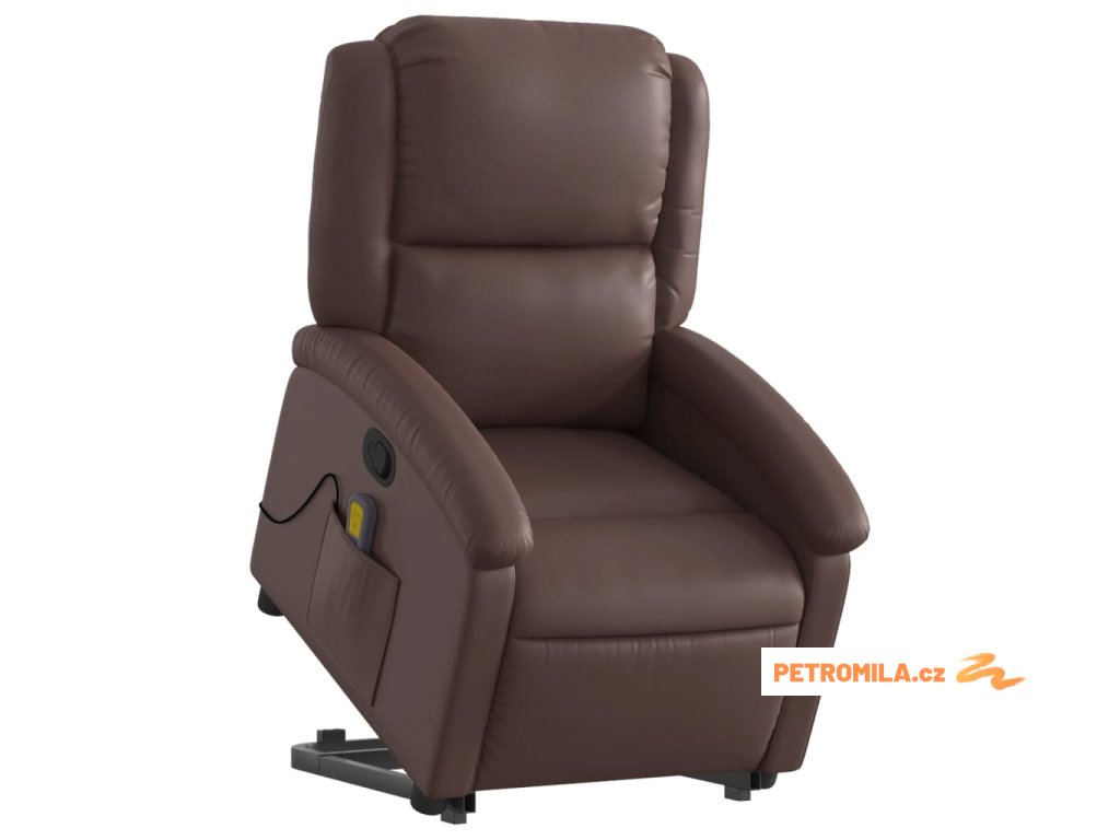 Zvedací masážní polohovací křeslo hnědé umělá kůže