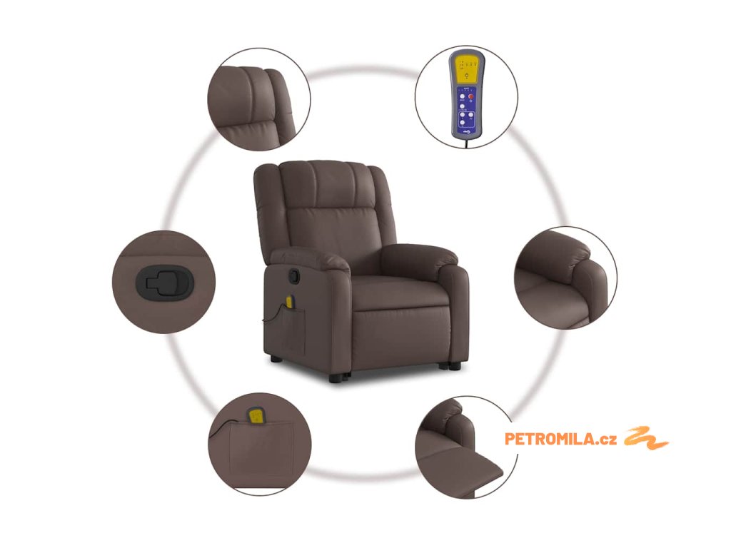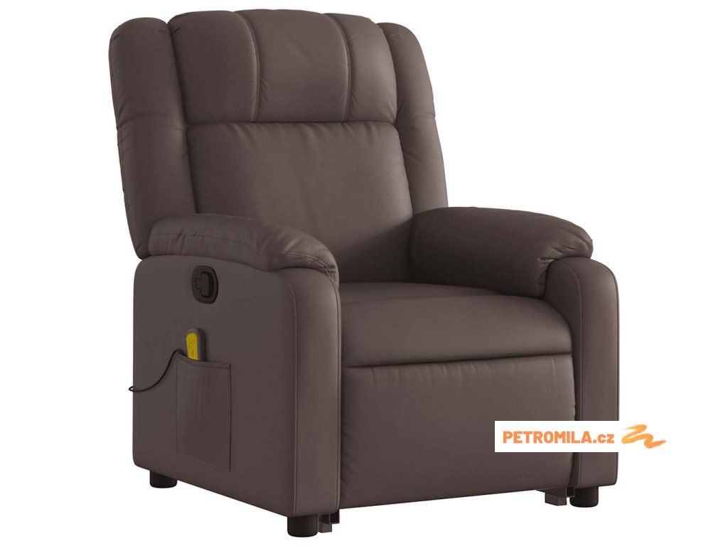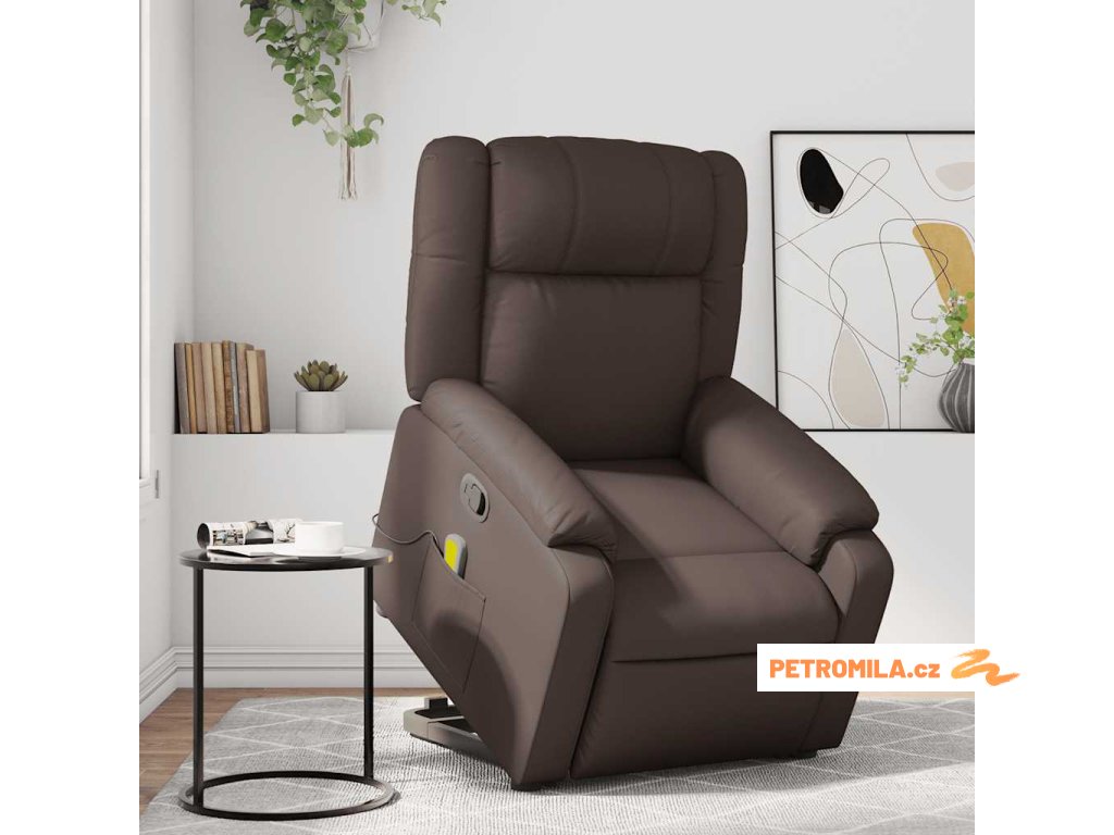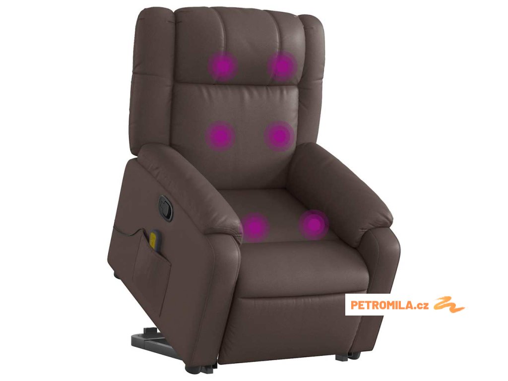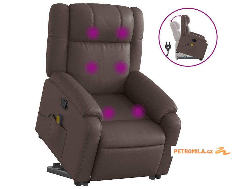 Zvedací masážní polohovací křeslo hnědé umělá kůže