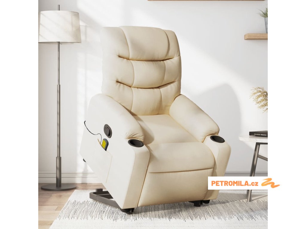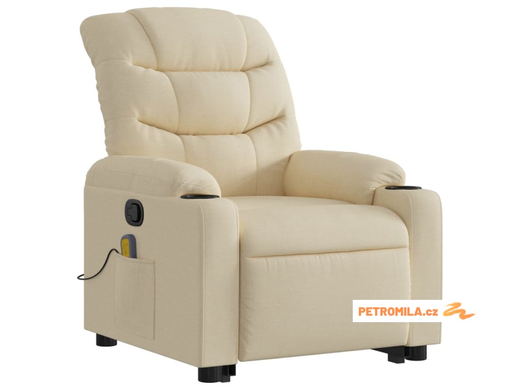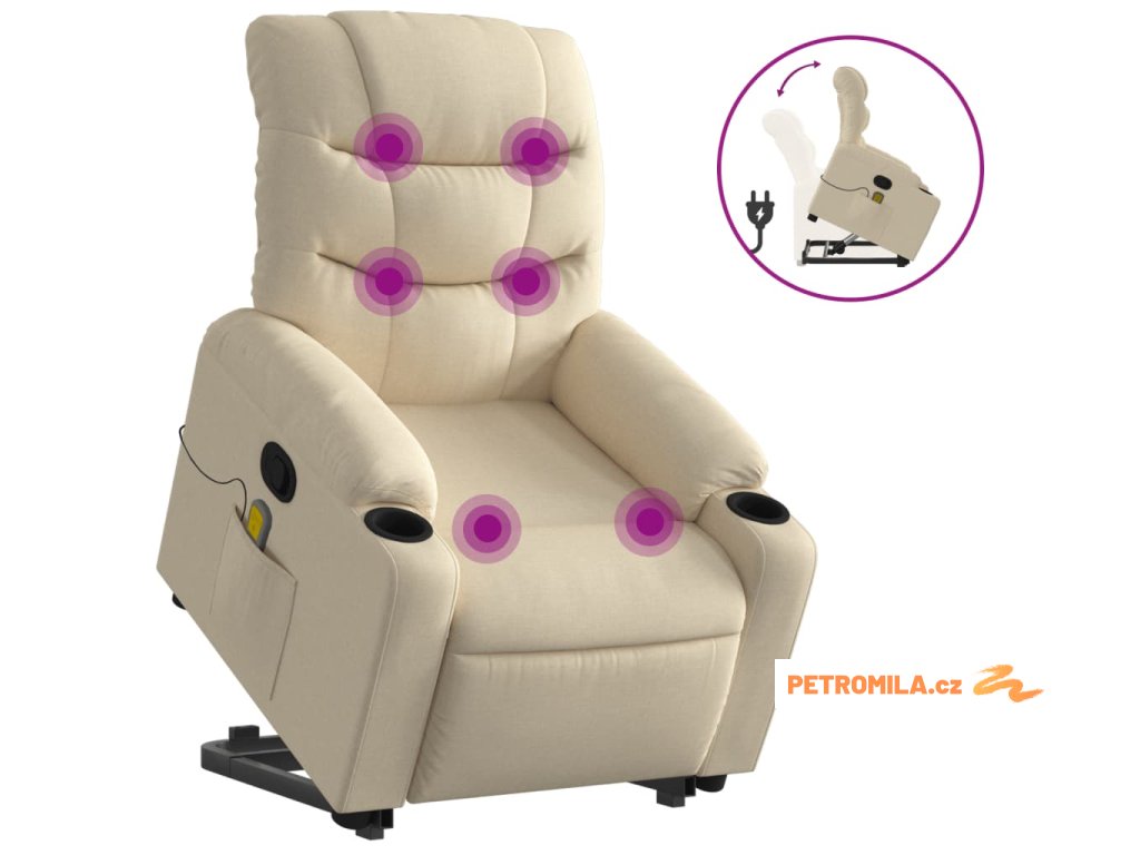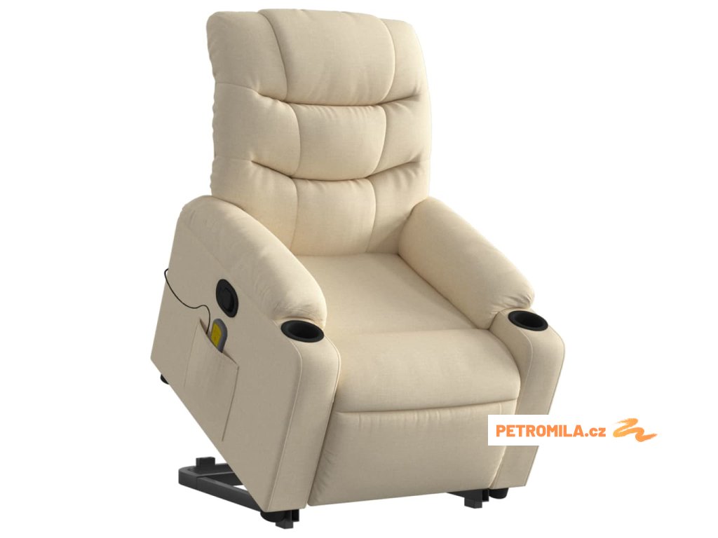 Zvedací masážní polohovací křeslo krémové textil