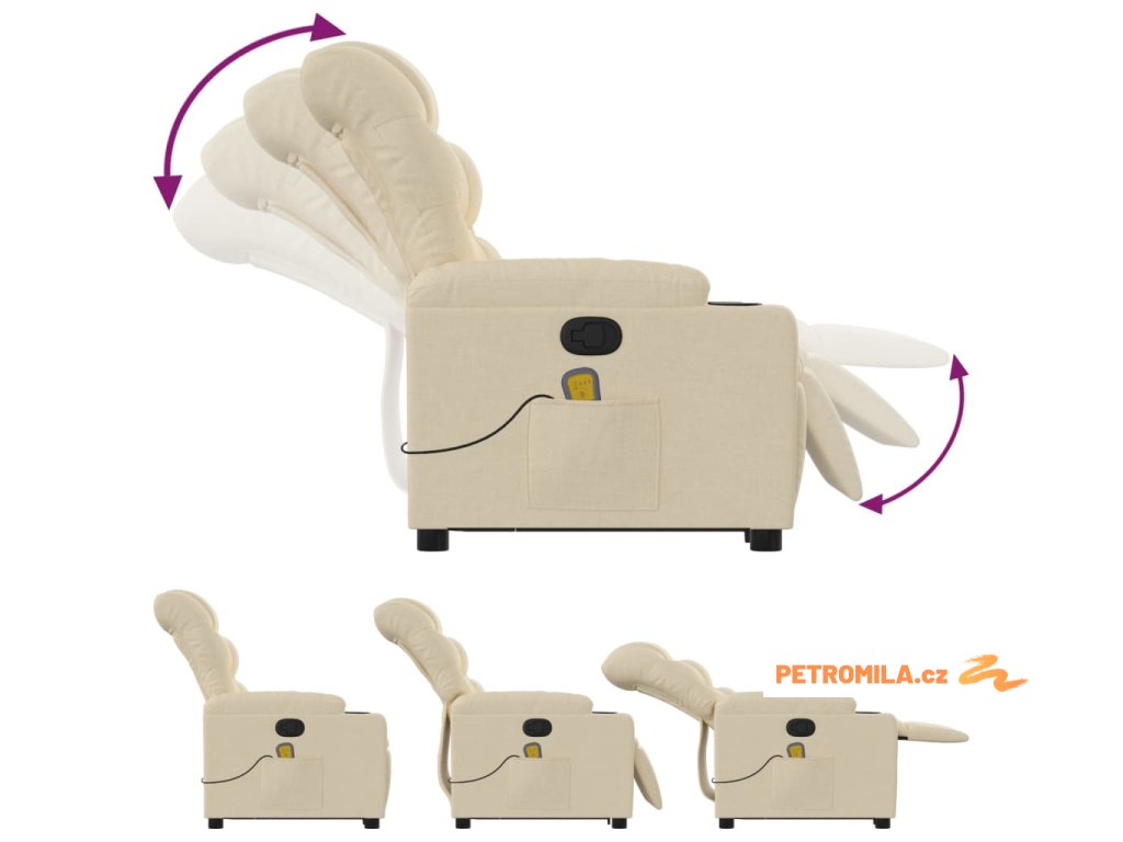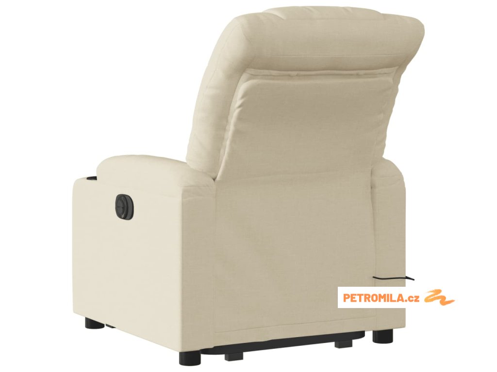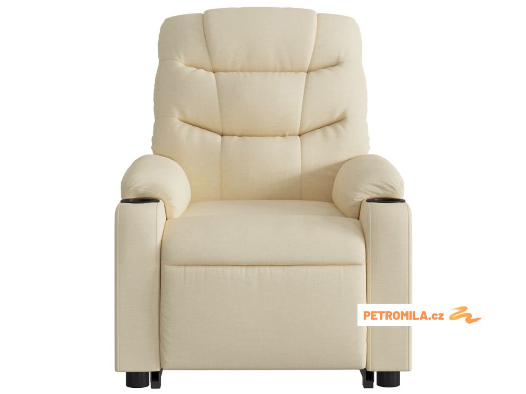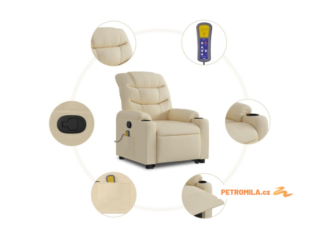 Zvedací masážní polohovací křeslo krémové textil